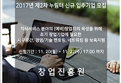 | [창업진흥원] 2017년 제2차 누림터 신규입주기업 모집 공고 (0) | 2017.11.13 |
