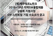 | [제주테크노파크/제주TP] 2018~19년 지역SW융합제품 상용화 지원사업 SW스타트업 기업 수요조사 공고 (0) | 2018.01.01 |
