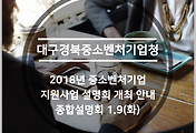 | [대구경북지방중소벤처기업청] 2018년 중소벤처기업 지원사업 설명회 개최 (0) | 2018.01.05 |