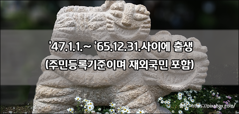 응시자격은 주민등록상 1947. 1. 1. ~ 1965. 12. 31. 사이에 출생하신 만 56세~만 74세의 대한민국 국적의 여성에 한정합니다.(주민등록기준이며 재외국민 포함)