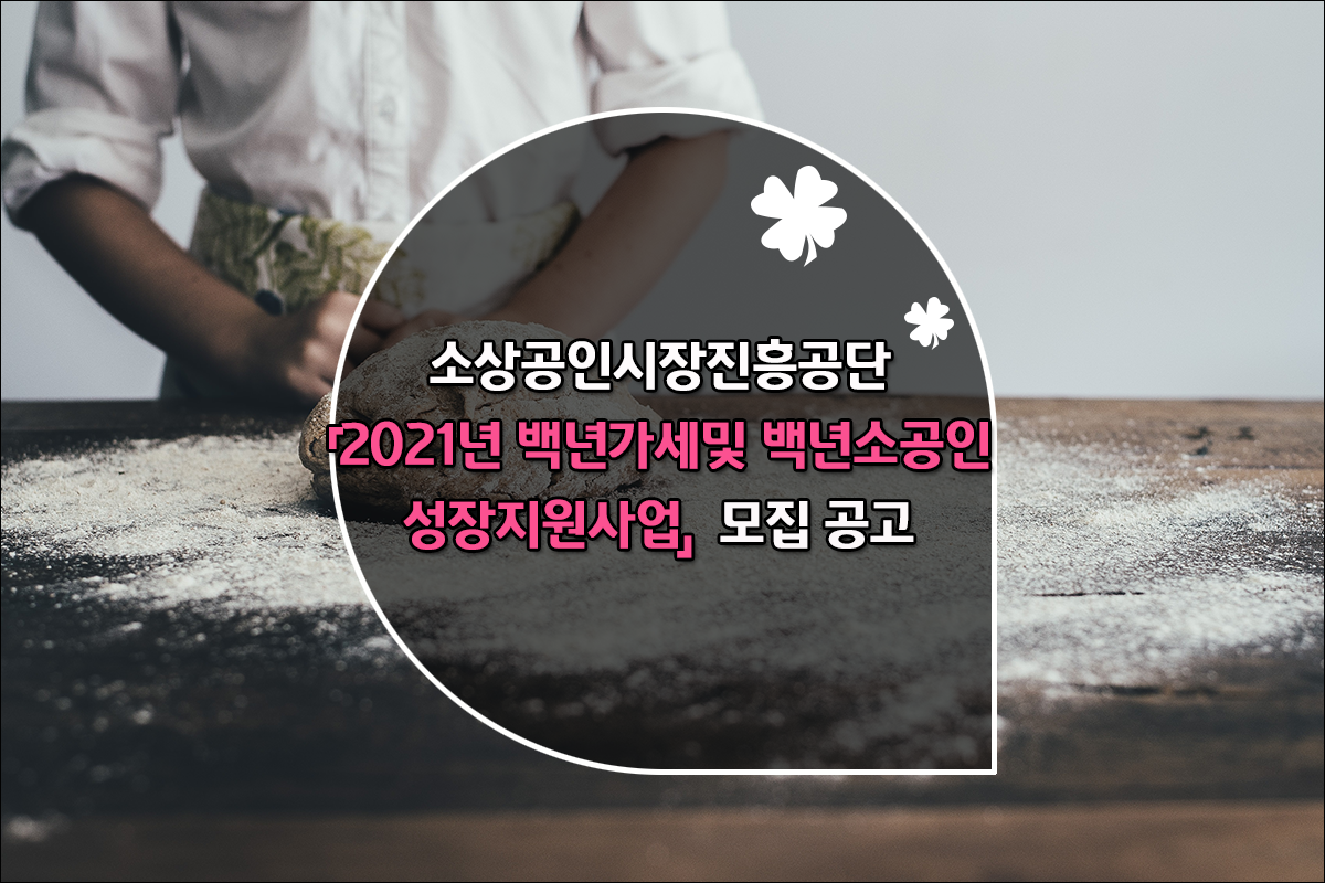 중소벤처기업부, 소상공인시장진흥공단에서는 백년가게 및 백년소공인을 대상으로 시설개선 및 판로지원을 통해 성장 기반을 조성하고 성공모델로 육성하고자 "2021년 백년가게 및 백년소공인 성장지원 사업"을 시행할 예정이에 이에 참여할 백년가게 또는 백년소공인을 모집한다.
