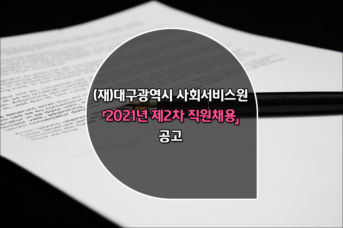 이상은 대구광역시 서비스사회원 2021년 제2차 직원채용 공고내용 중 중요한 사항을 개략적으로 요약했으며, 지원에 따른 자격요건(공통, 분야별 자격요건), 필기시험, 인성검사, 인적성검사 등에 대한 사항은 첨부된 공고문을 통해 확인하시길 바랍니다.