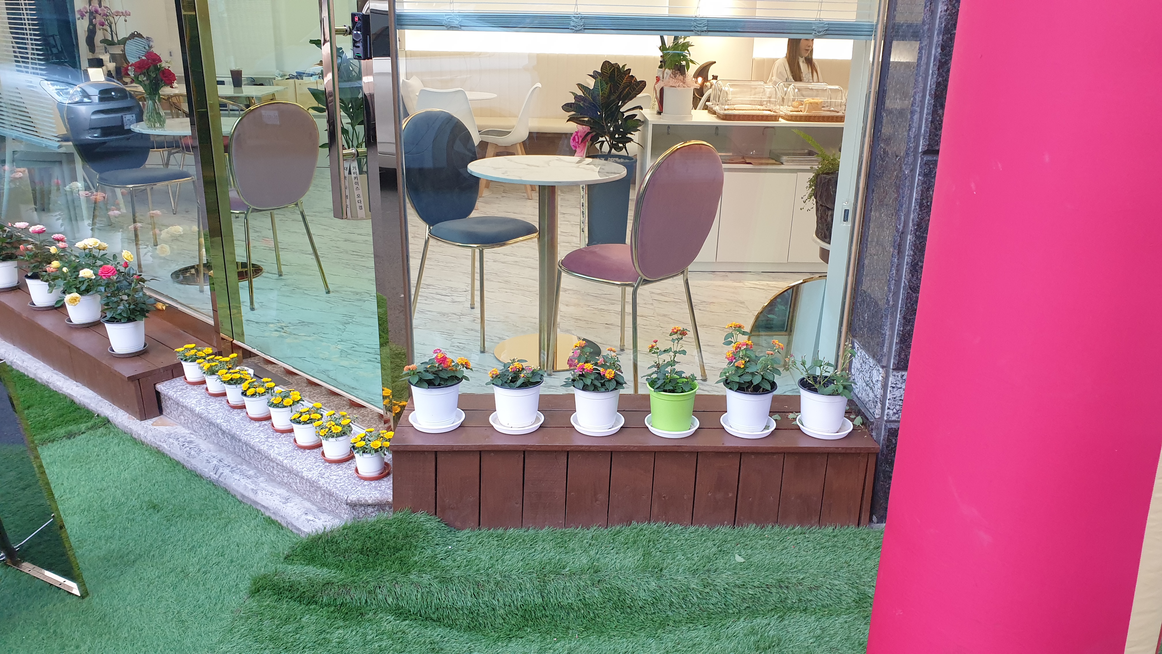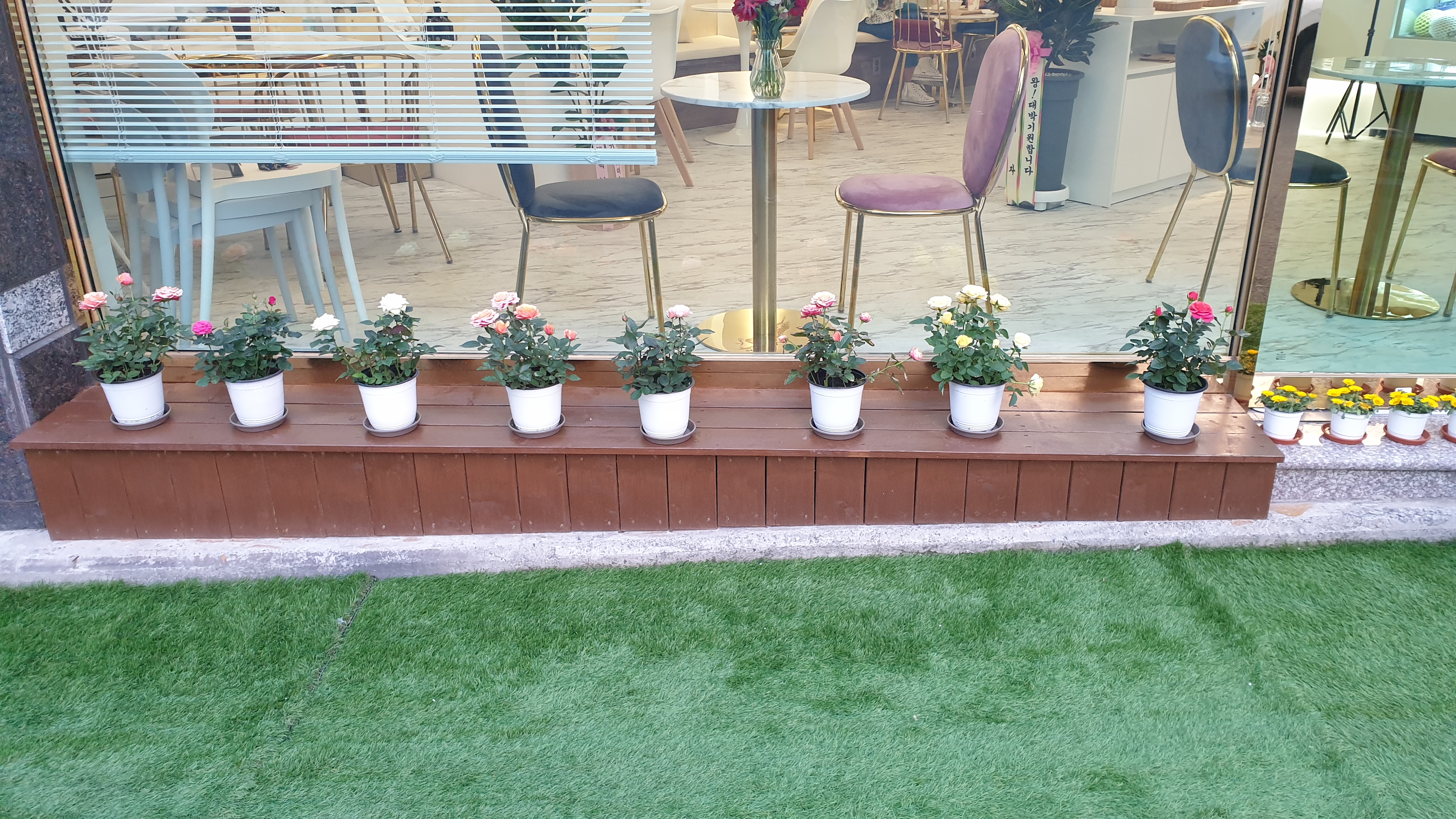 카페 같기도 하고 피부미용 샾 같기도 하고 정체 불명이지만 꽃을 가지런히 내 놓으셨더군요. 제 눈을 힐링하게 해주셔서 감사합니다.