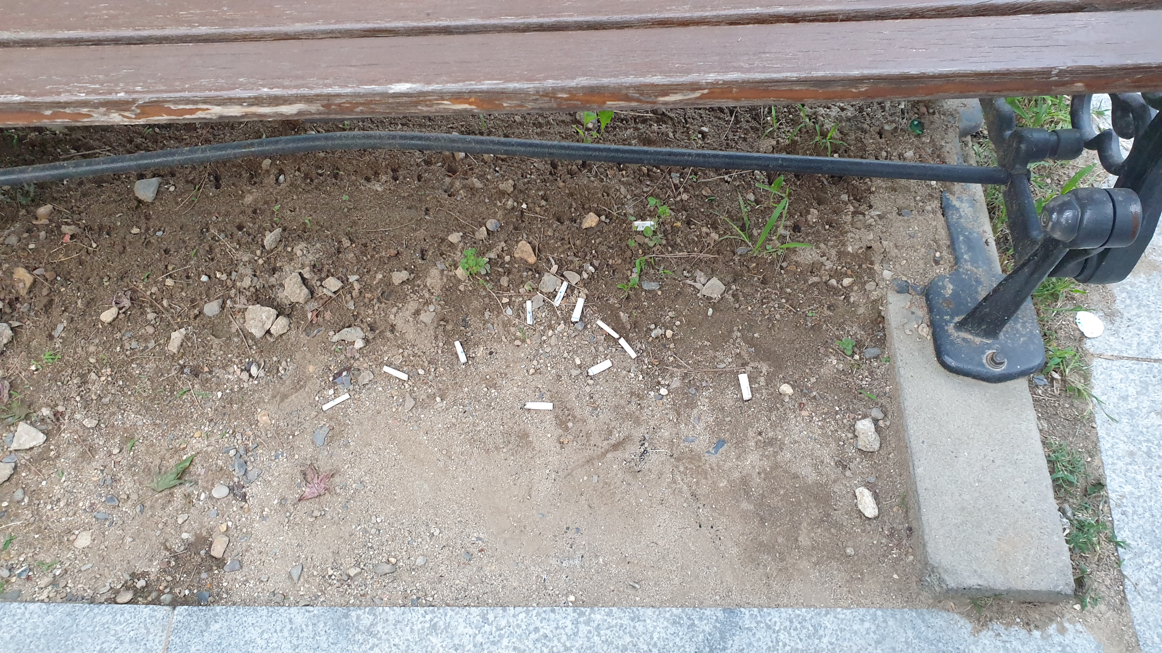 동네마다 작은 공원이 있는데 공원 벤치 아래입니다.