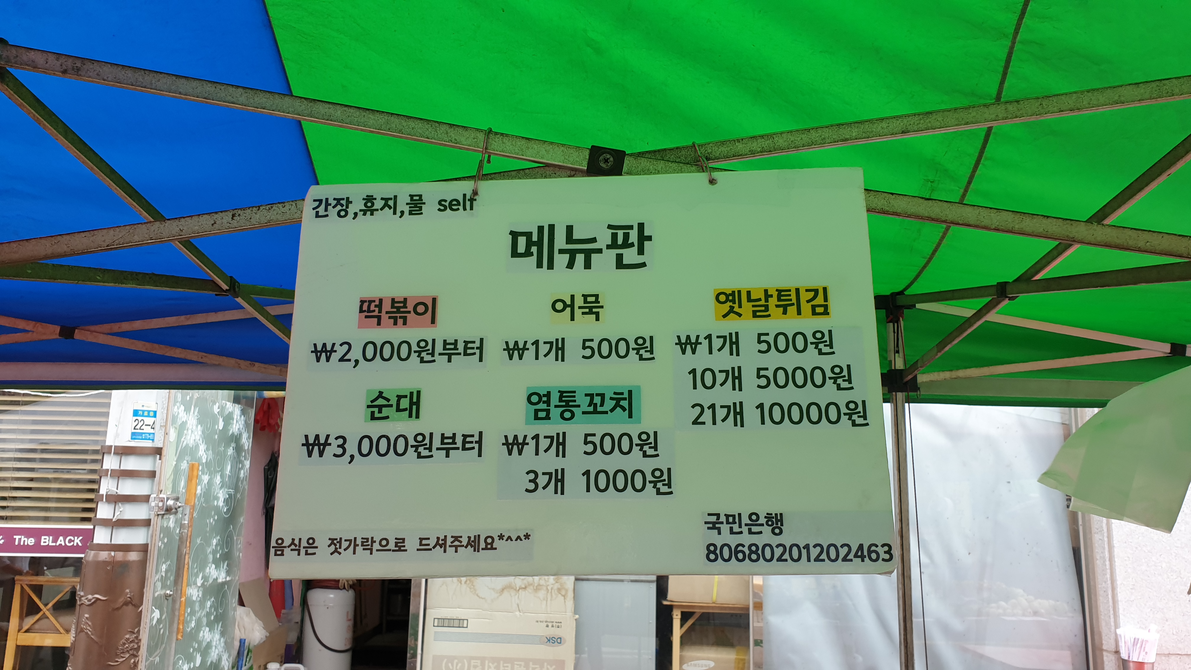 떡볶이, 어묵, 튀김, 순대, 염통꼬치 등을 파셨는데 그냥 지나칠 수는 없잖아요.