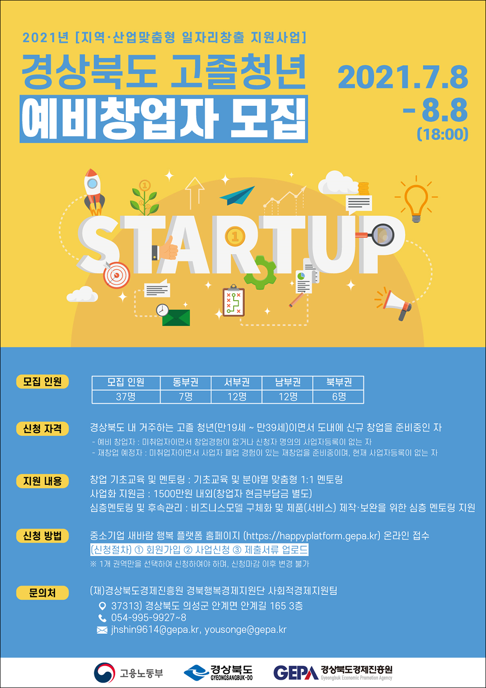 모집된 37명을 대상으로 경북경제진흥원에서는 창업 기초 교육 및 멘토링, 사업화 지원금(1,500만원 내외), 심층 멘토링을 지원하게 된다.