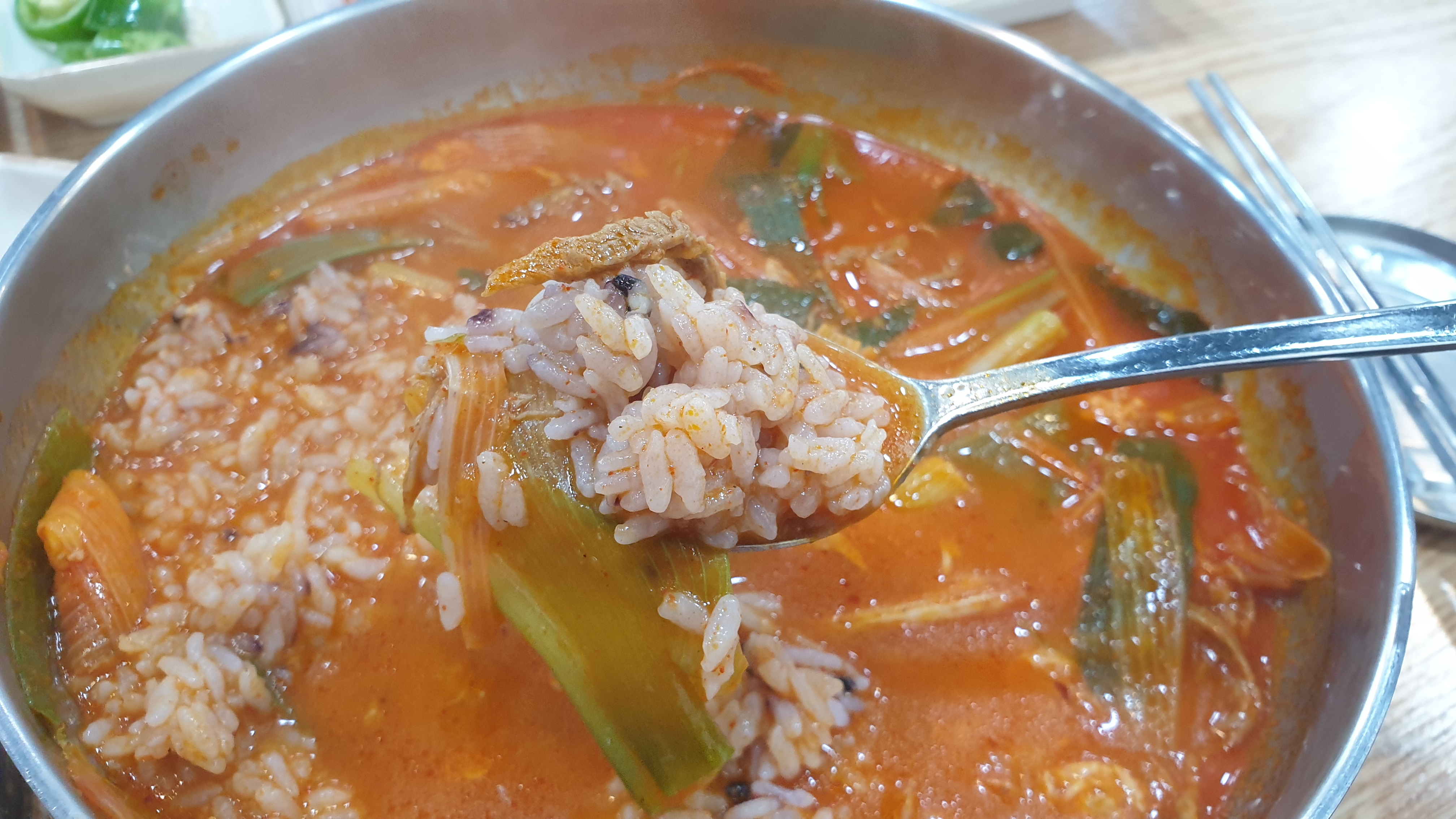 한 입에 들어갈 만큼 숟가락으로 떠서 먹는 육개장은 엄지척입니다.