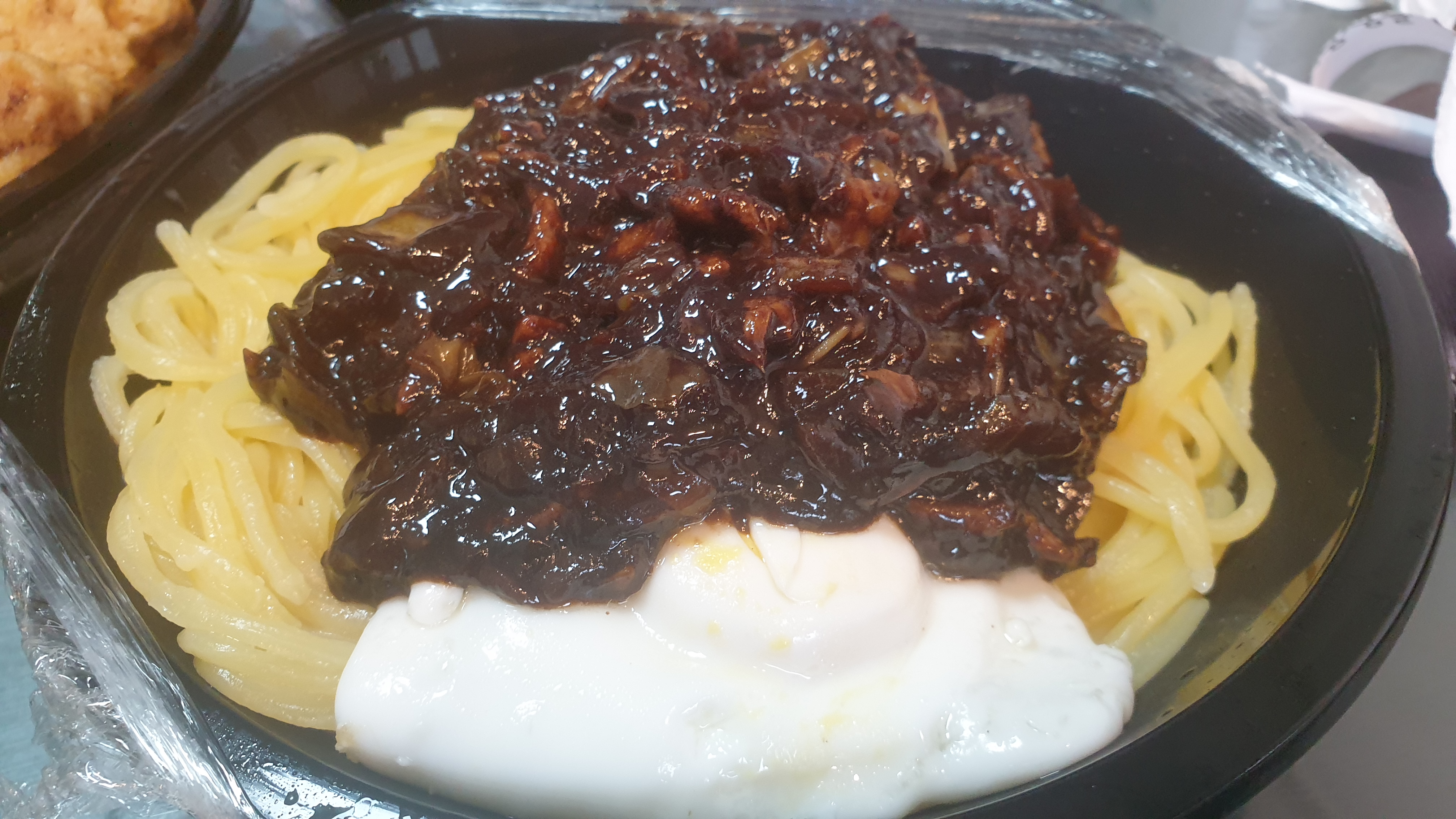 간짜장 비비느라 이리 치이고 저리 치인 계란후라이~ 그래도 맛있다.