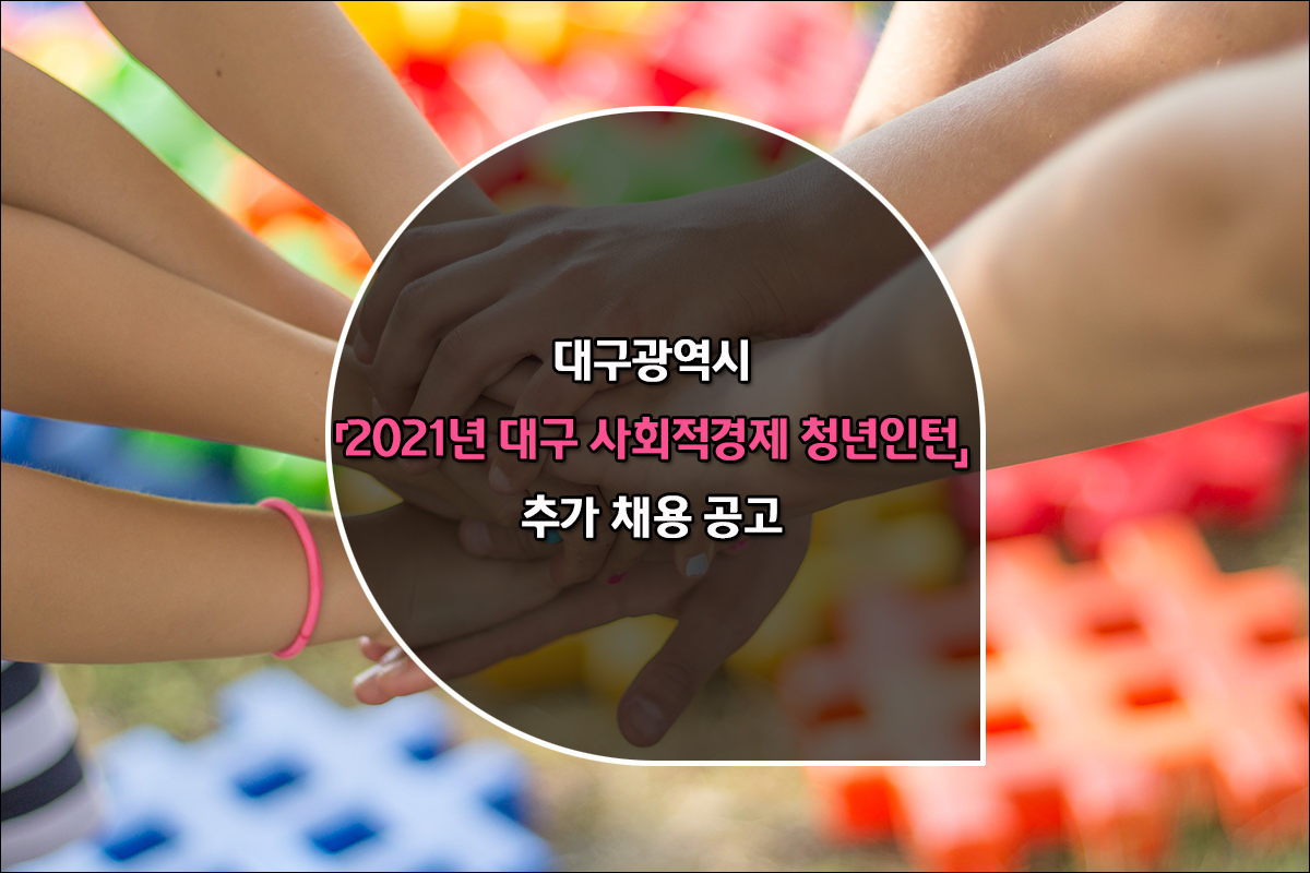 대구광역시에서는 지역 청년에게 적합한 사회적경제기업 내 일자리를 제공하여 청년들의 지속가능한 경제활동을 지원하고, 청년이 지역공동체 발전, 지역사회문제 해결에 기여할 수 있도록 하는 "대구 사회적경제 청년인턴사업"을 시행하며 참여자를 모집한다(추가 채용 공고)
