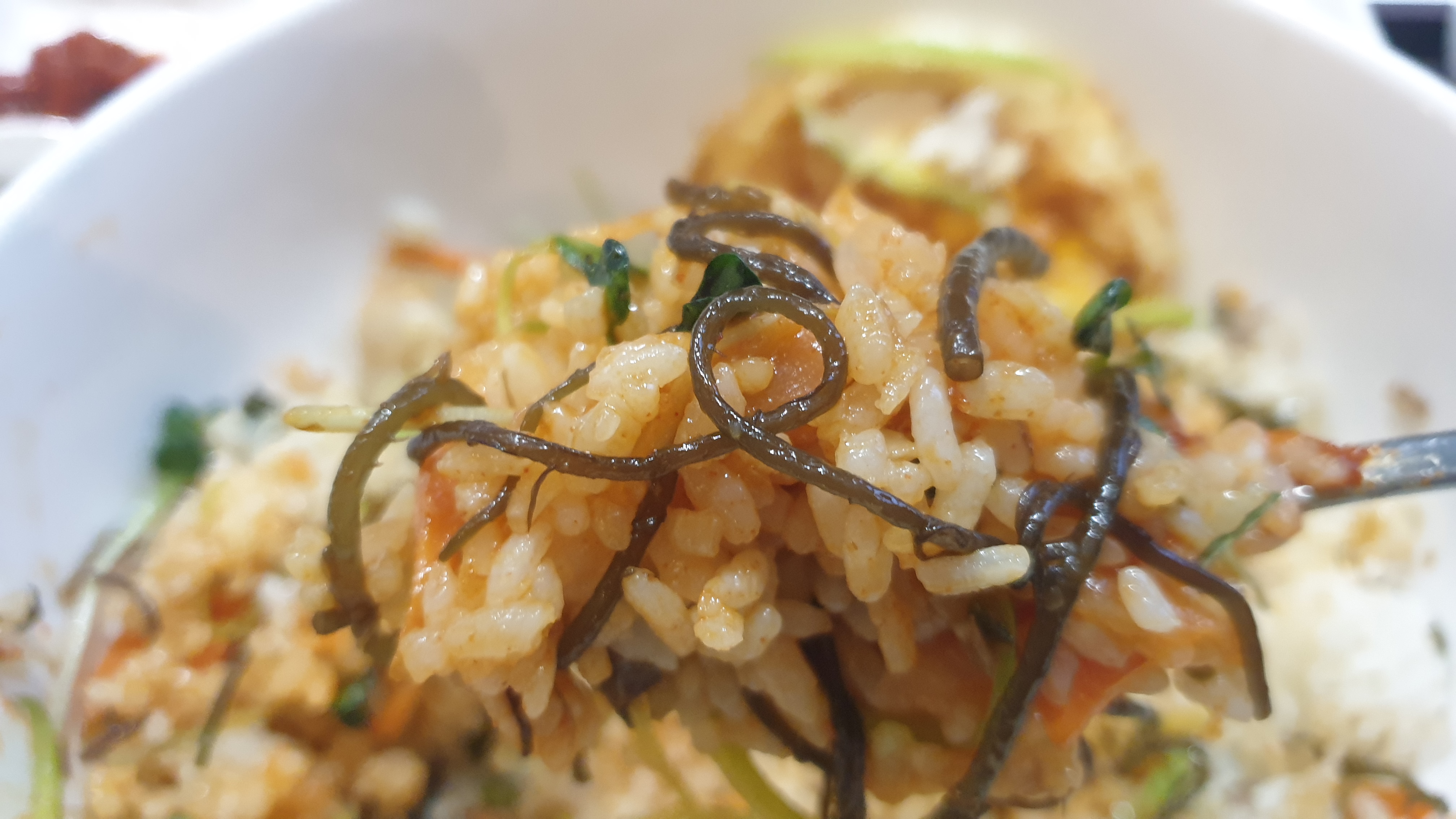 비빔밥에 함께 나온 튀김도 한입