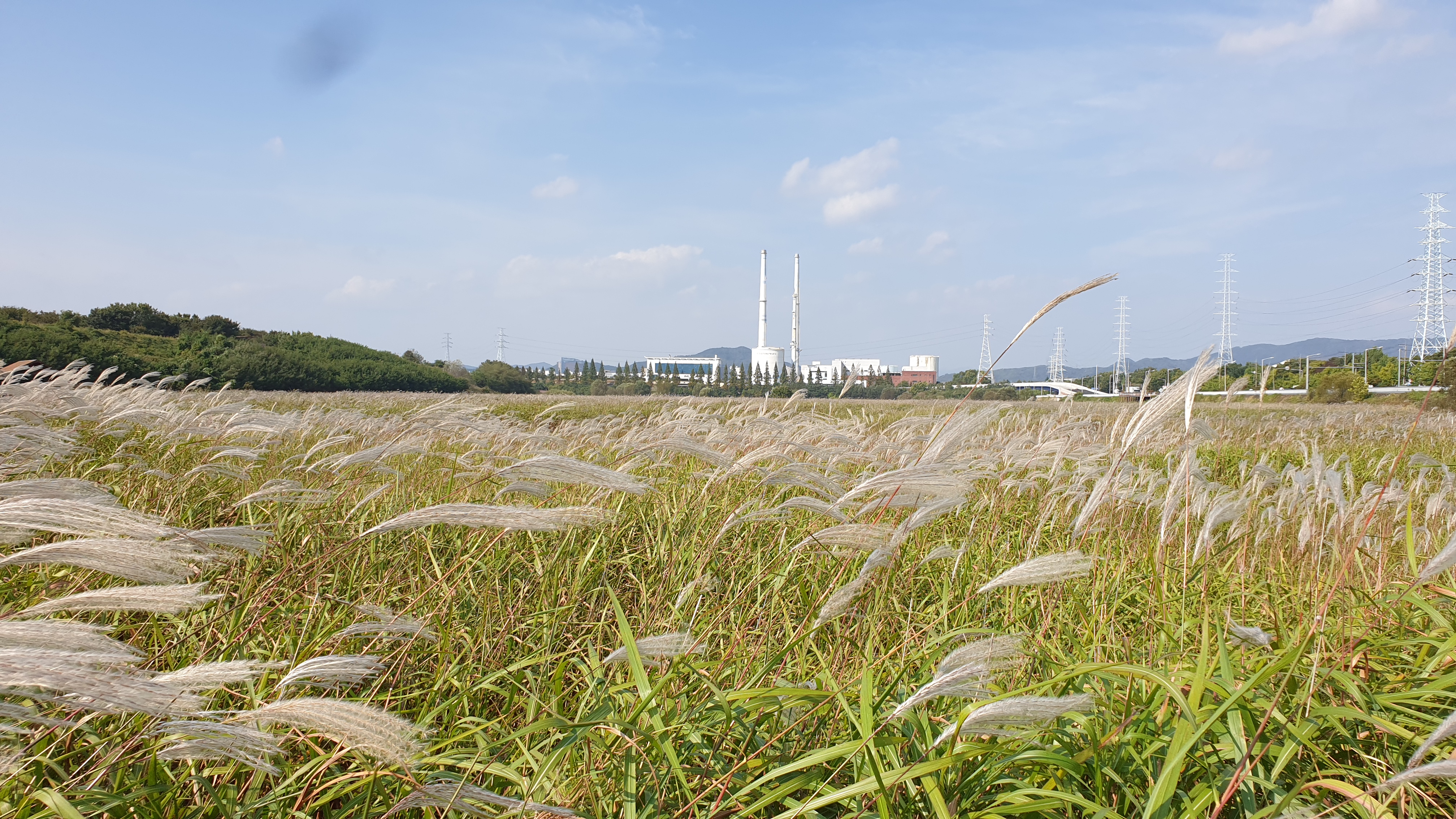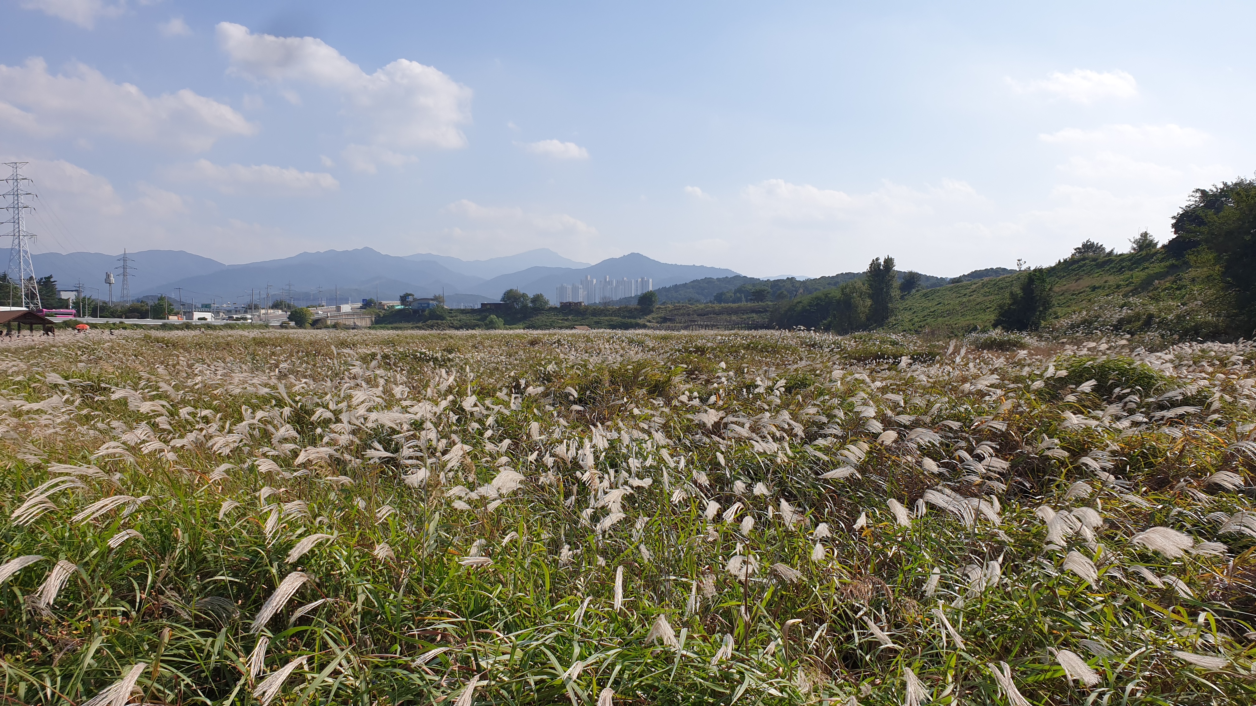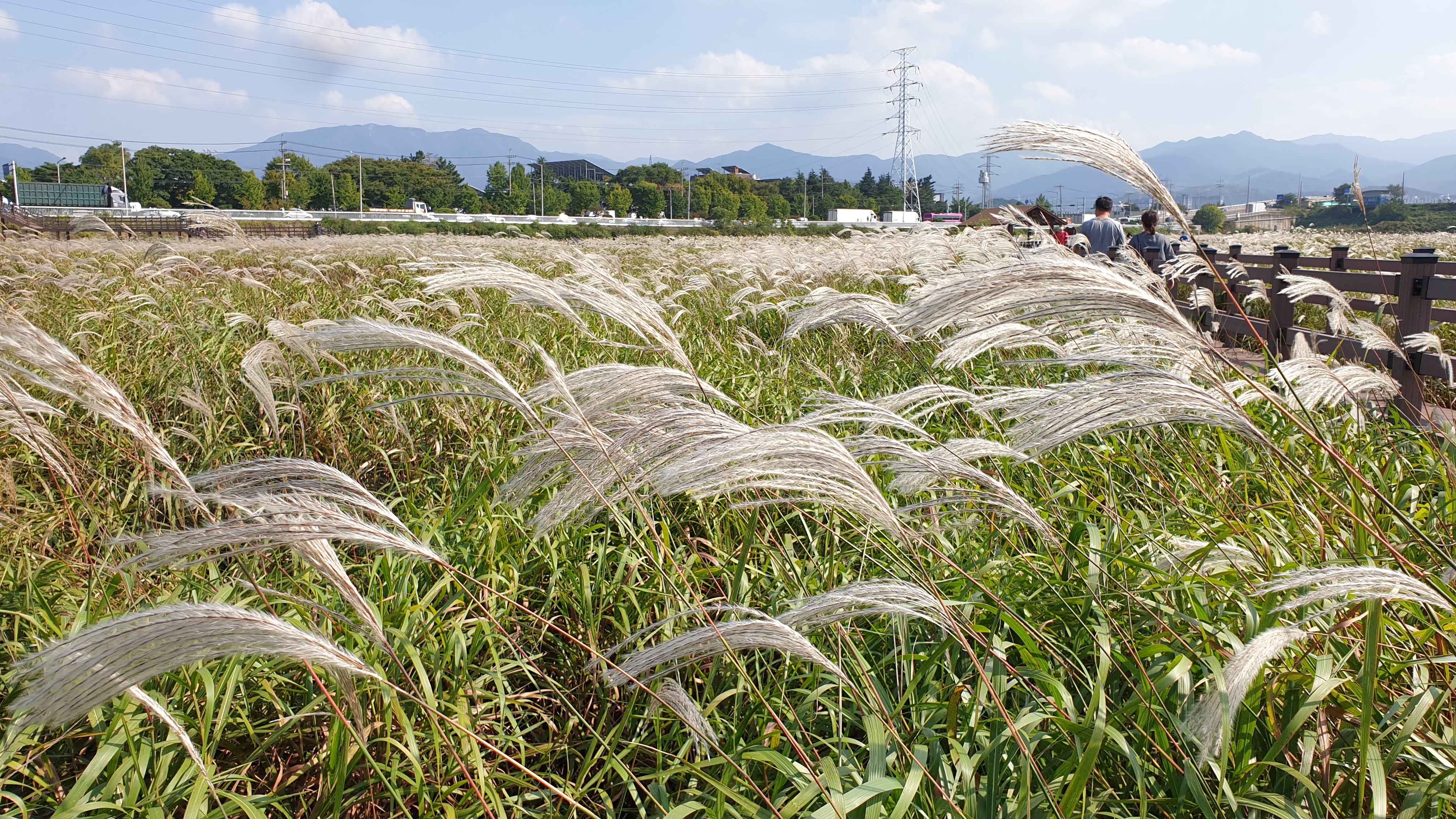 마침 바람이 슝~하고 불어서 모든 억새가 저를 향하고 있을 때입니다. 억새가 조금 더 많아지는 10월 하순경이면 절경이겠죠?뷰가 끝내 줄 겁니다.