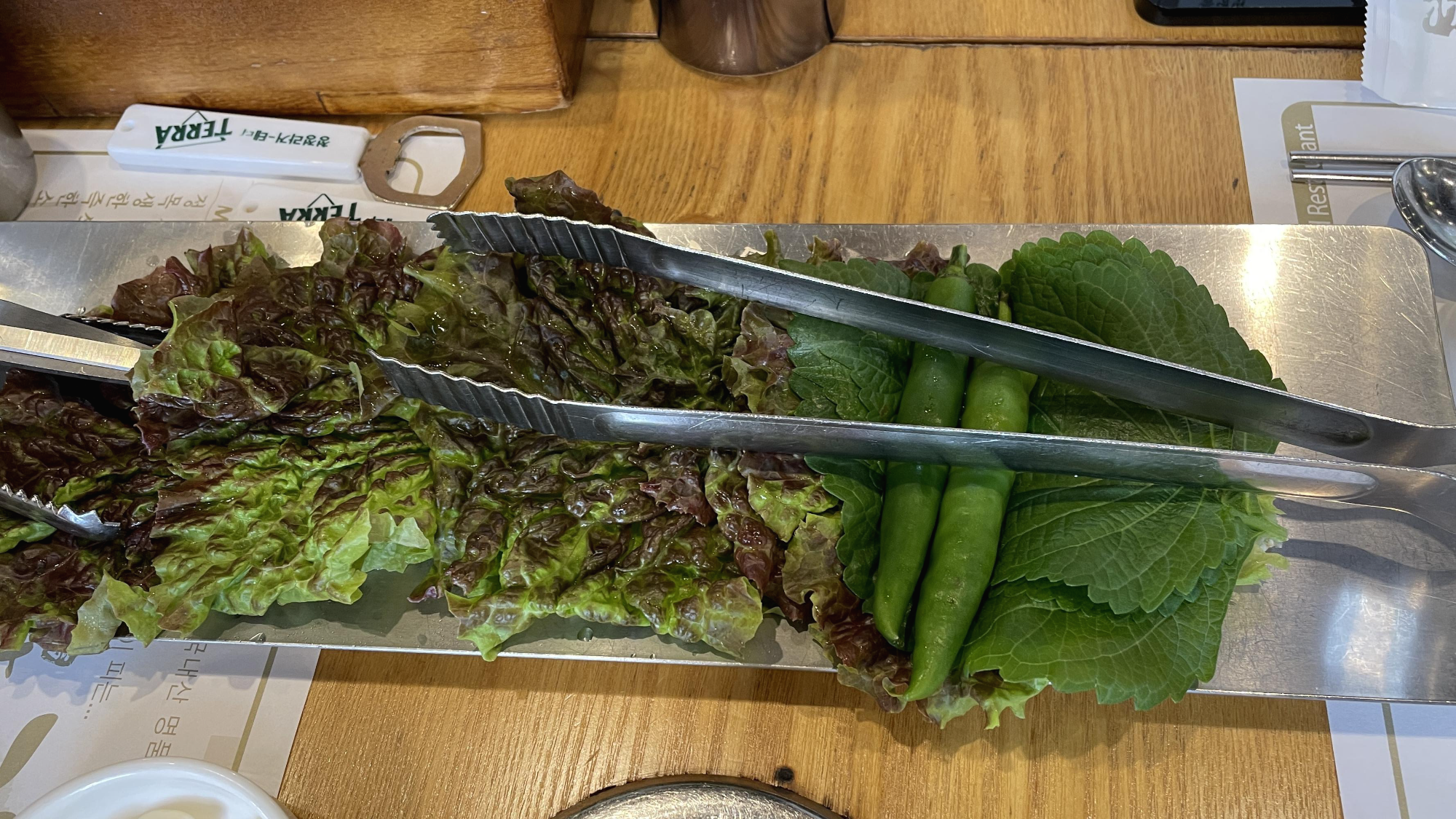 제일 먼저 등장한 녀석은 야채와 밑반찬들입니다.