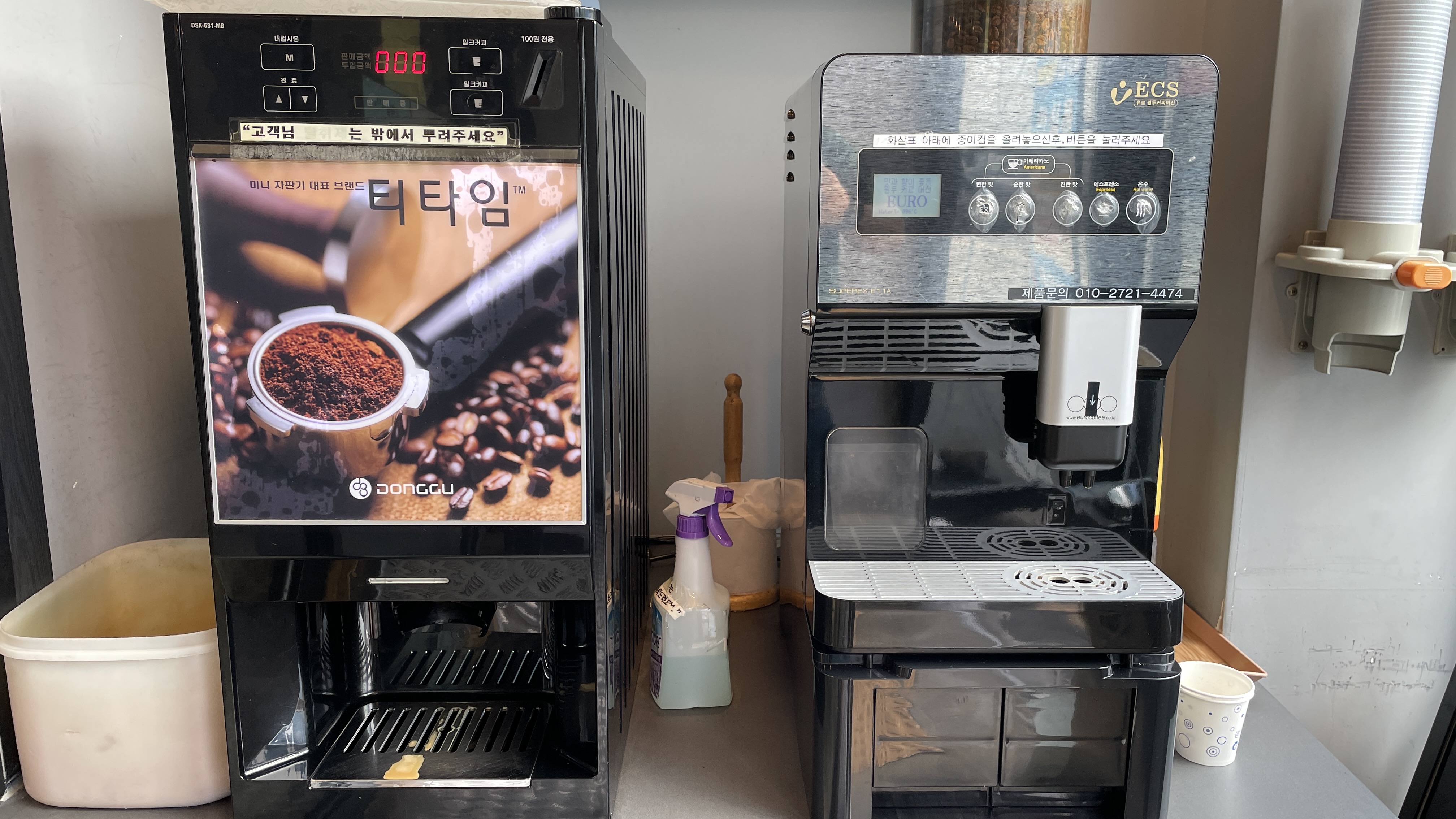앞산네거리 행복한갈비에는 취향에 따라 이용할 수 있는 커피머신이 2개나 있습니다. 저는 그냥 패스~ 강의실에 제가 마시던 커피가 있었으니까요