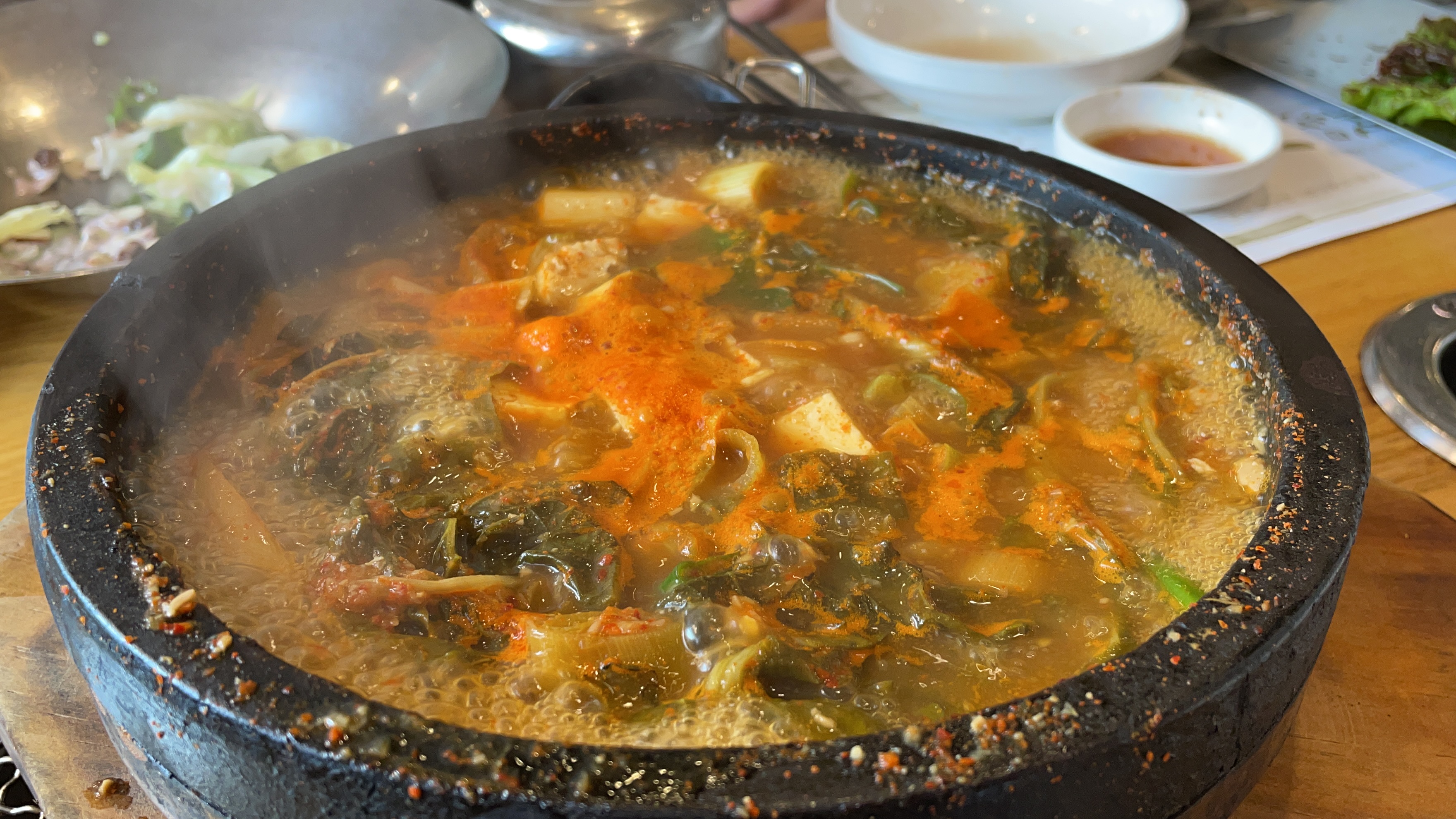 딱 먹을만큼 된장찌개를 덜었고요