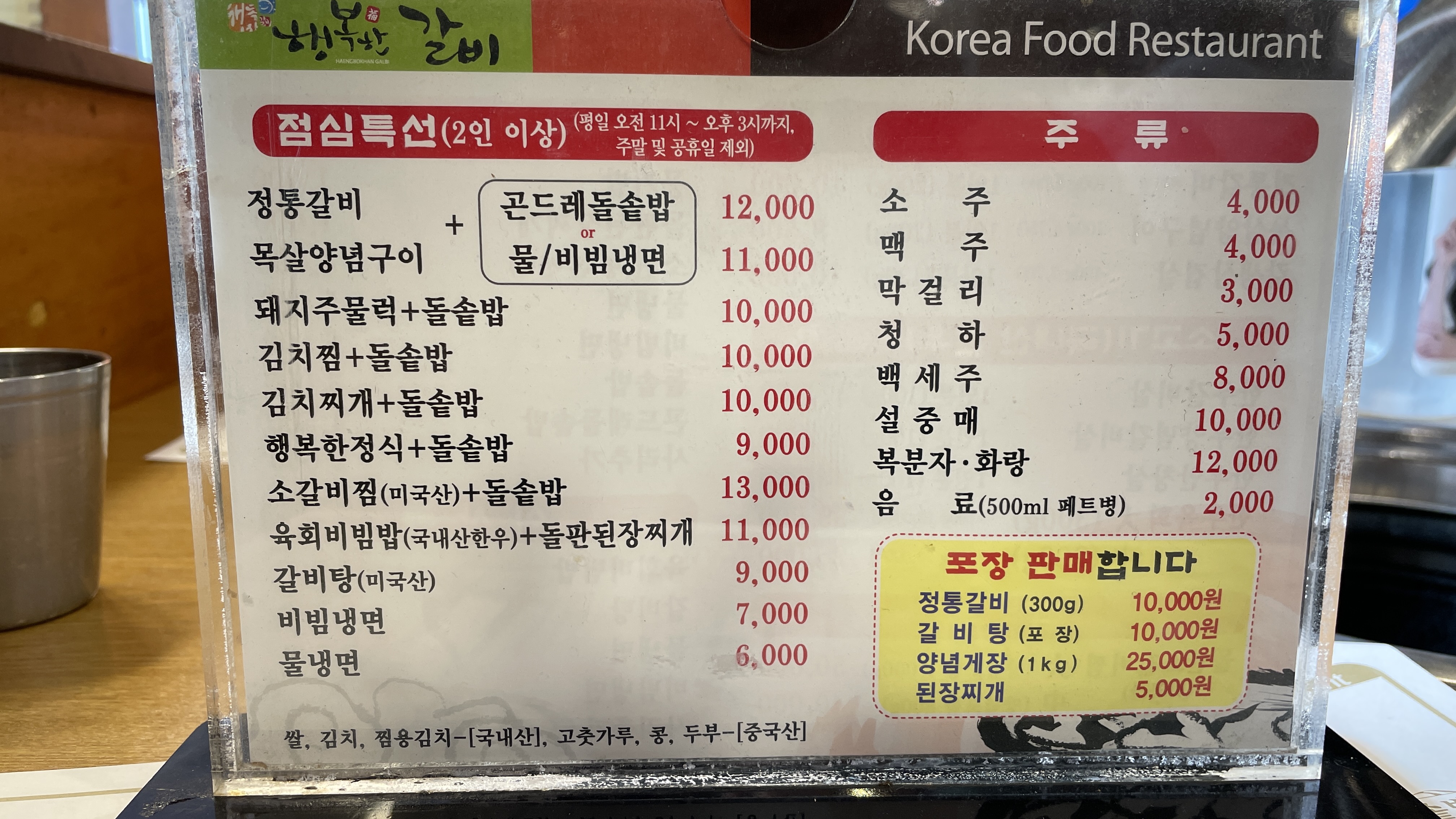 안타깝게도 점심특선은 토요일(주말 및 공휴일포함)이라 불가능했고요 대신 갈비 4인분을 주문했습니다.