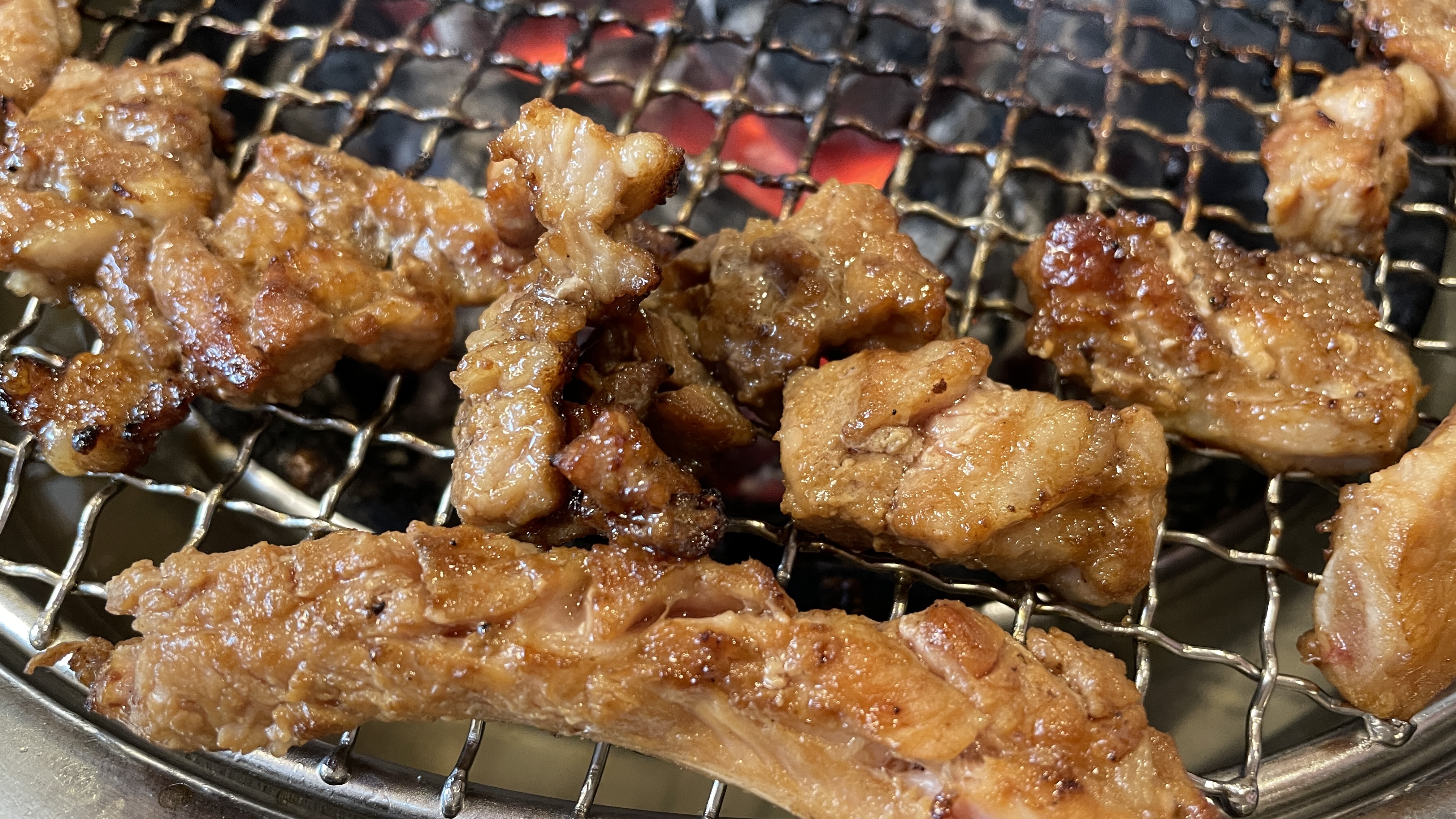 갈비살을 잘라내고 숯불 가장자리로 옮겨두고