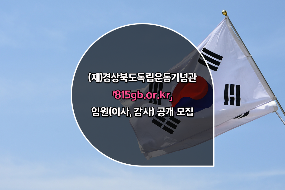 (재)경상북도독립운동기념관에서는 민족의 자주독립을 지켜온 독립운동가들의 나라사랑 정신을 계승하고 민족문화의 정체성 확립 및 올바른 국가관을 정립하는데 이바지 할 임원(이사 및 감사)를 공개 모집한다.