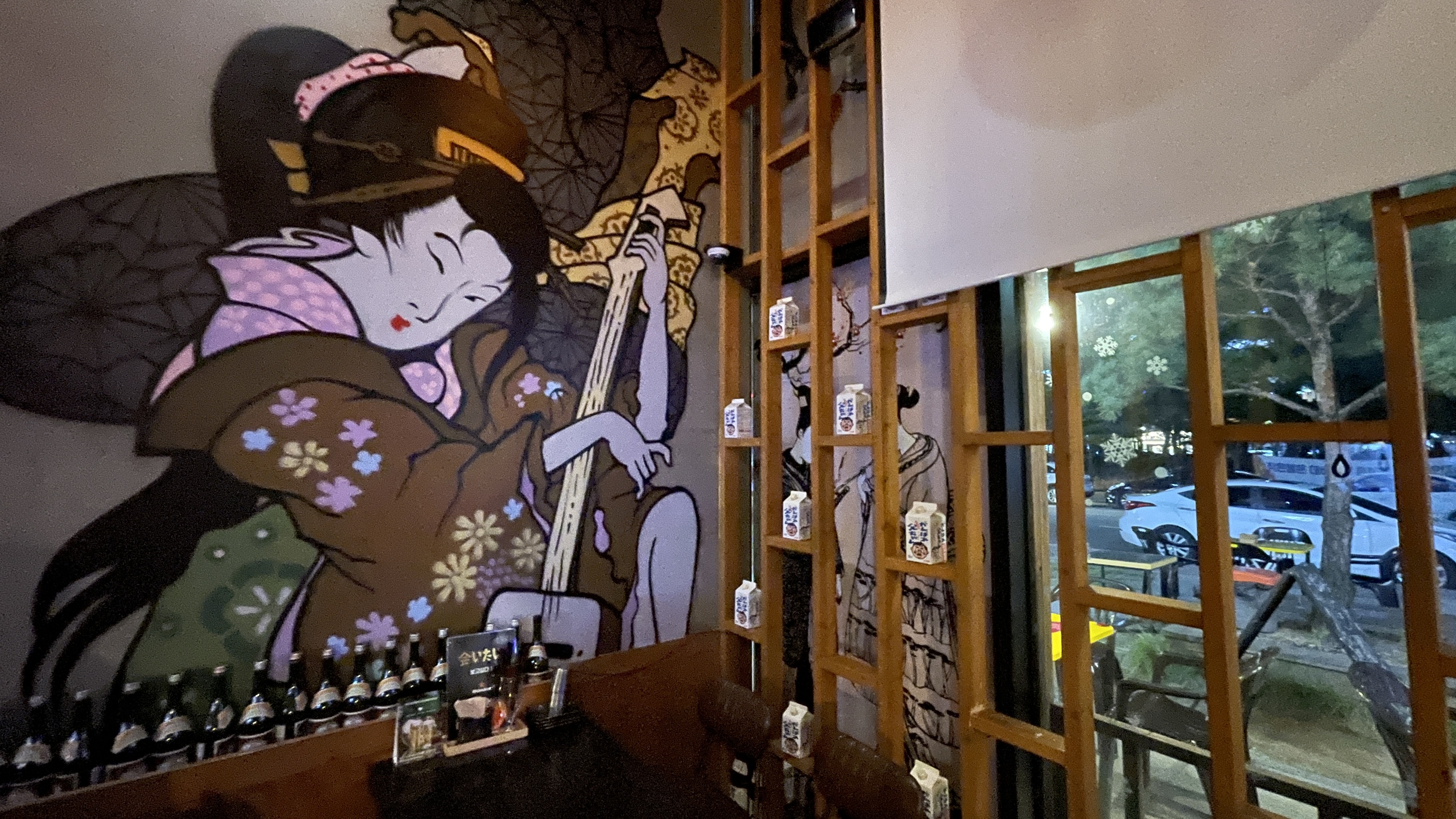 이자카야 답게 술병으로 인테리어를 했다.