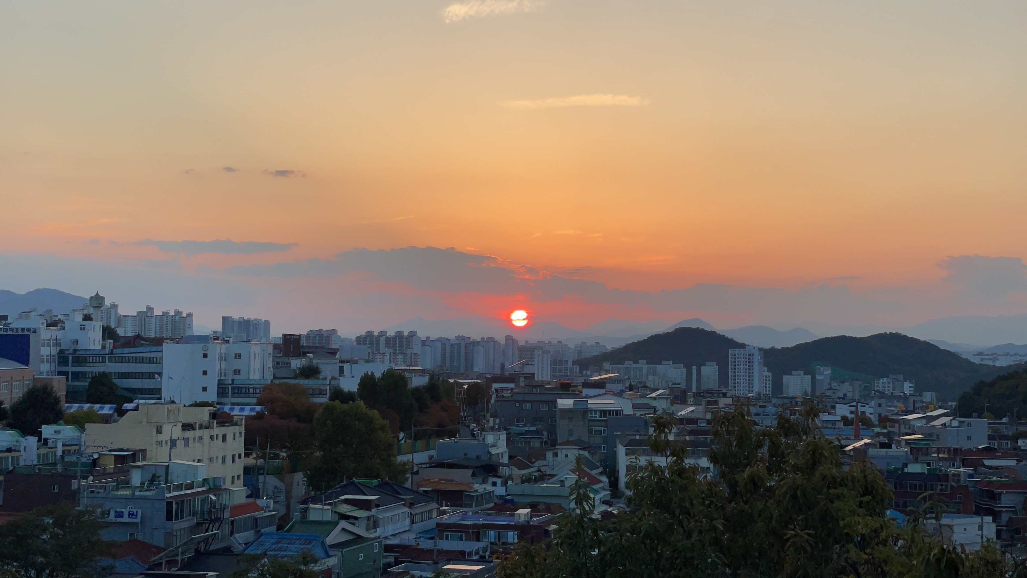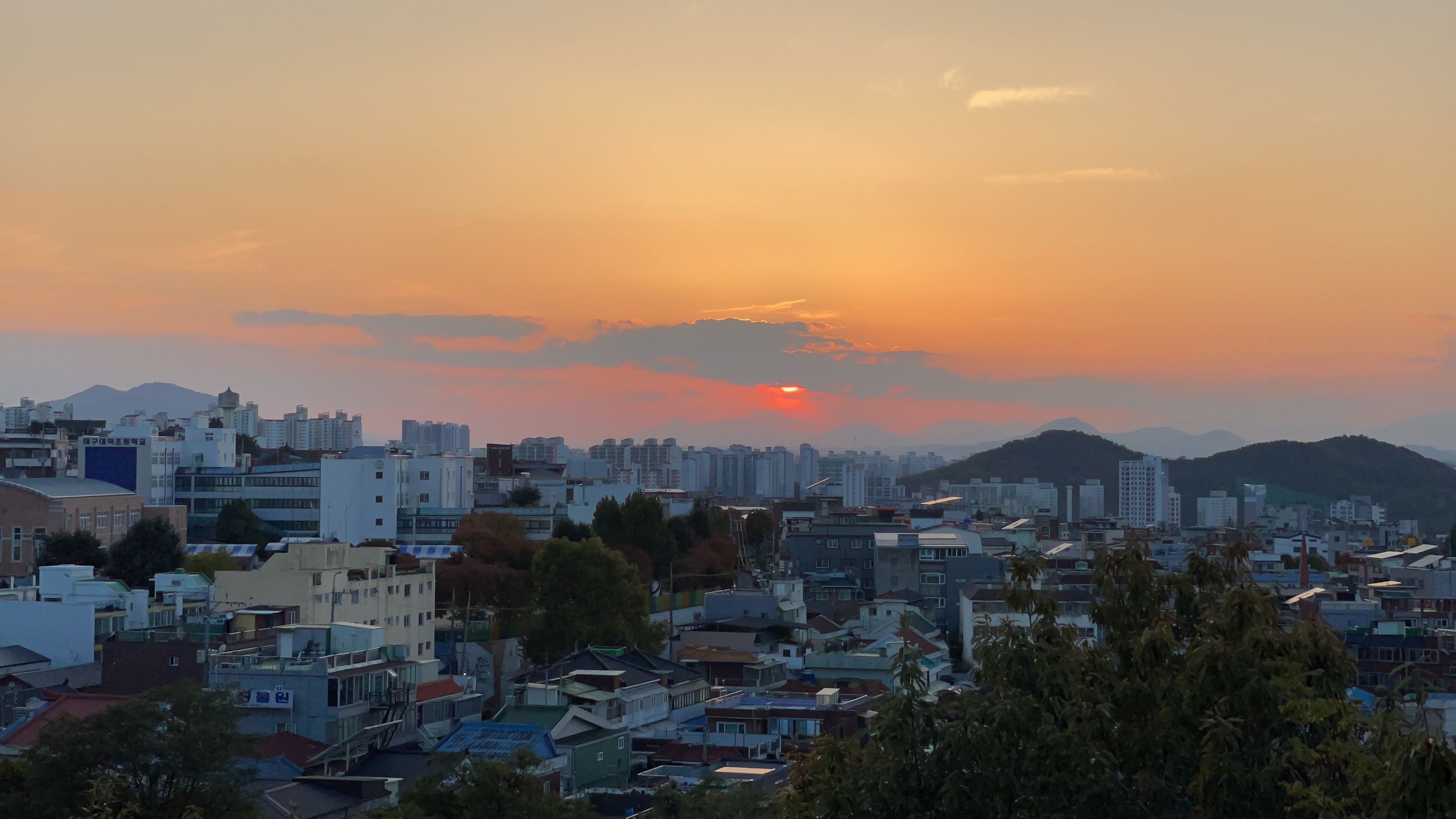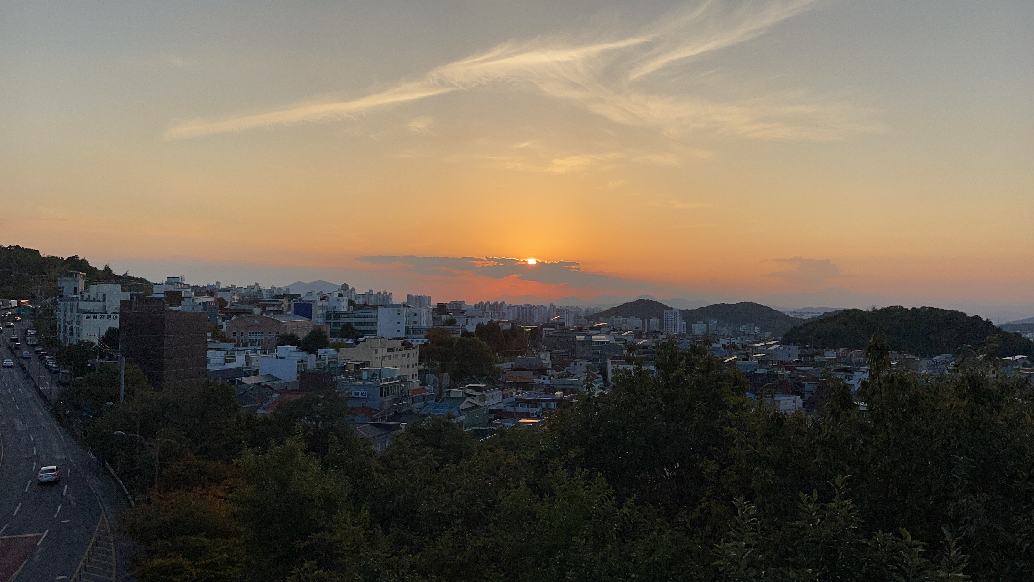 그래도 선명한 해가 넘어가는 장면은 목격했습니다.