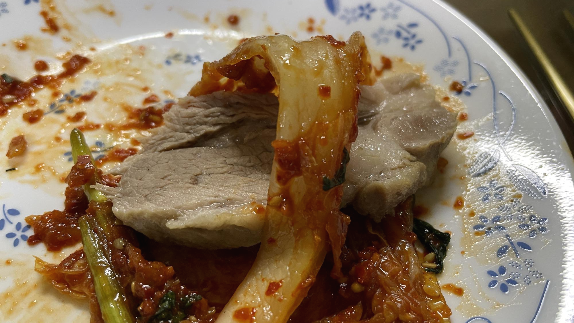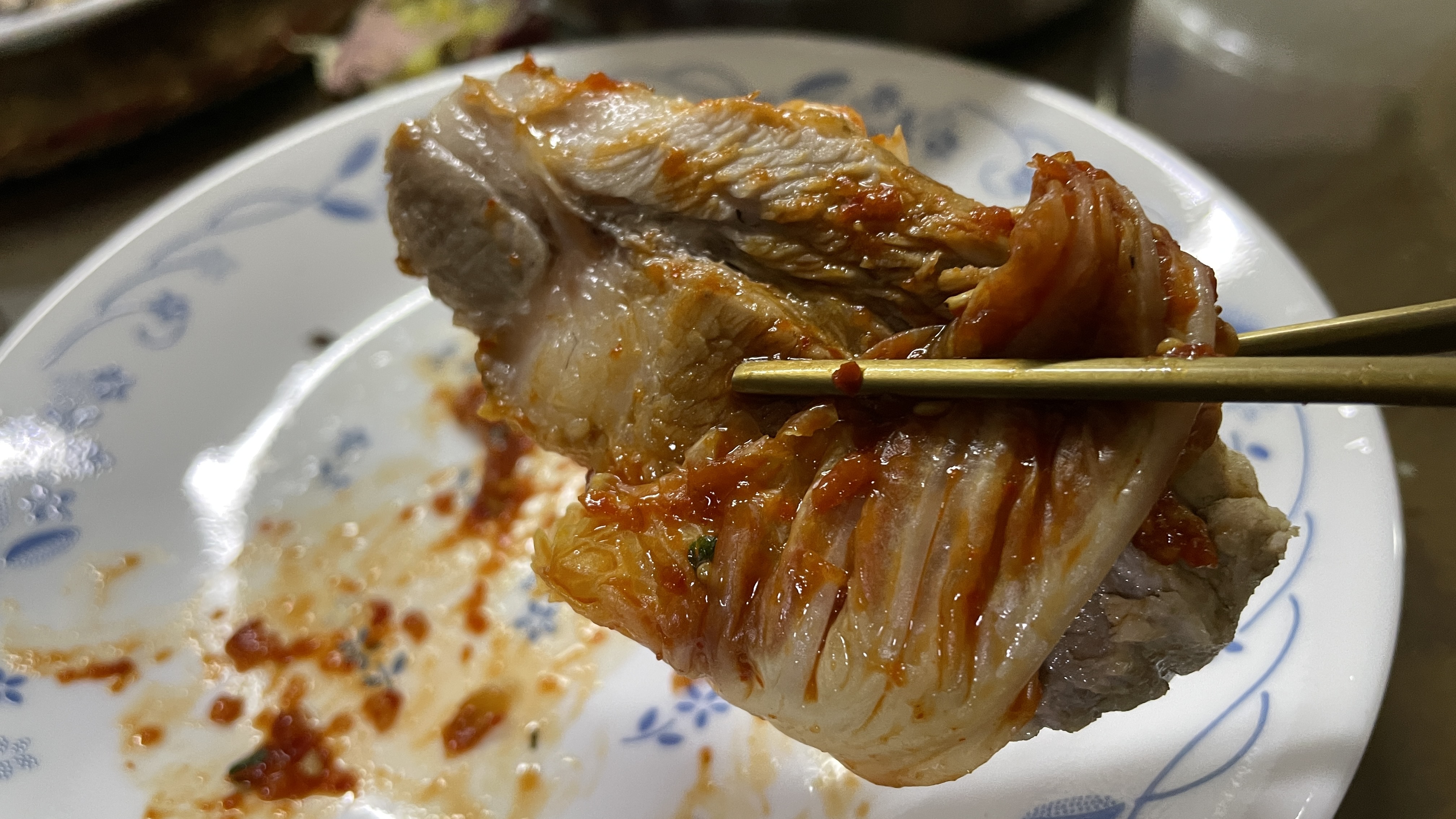 김치에 수육 한 점 올려서 먹으면