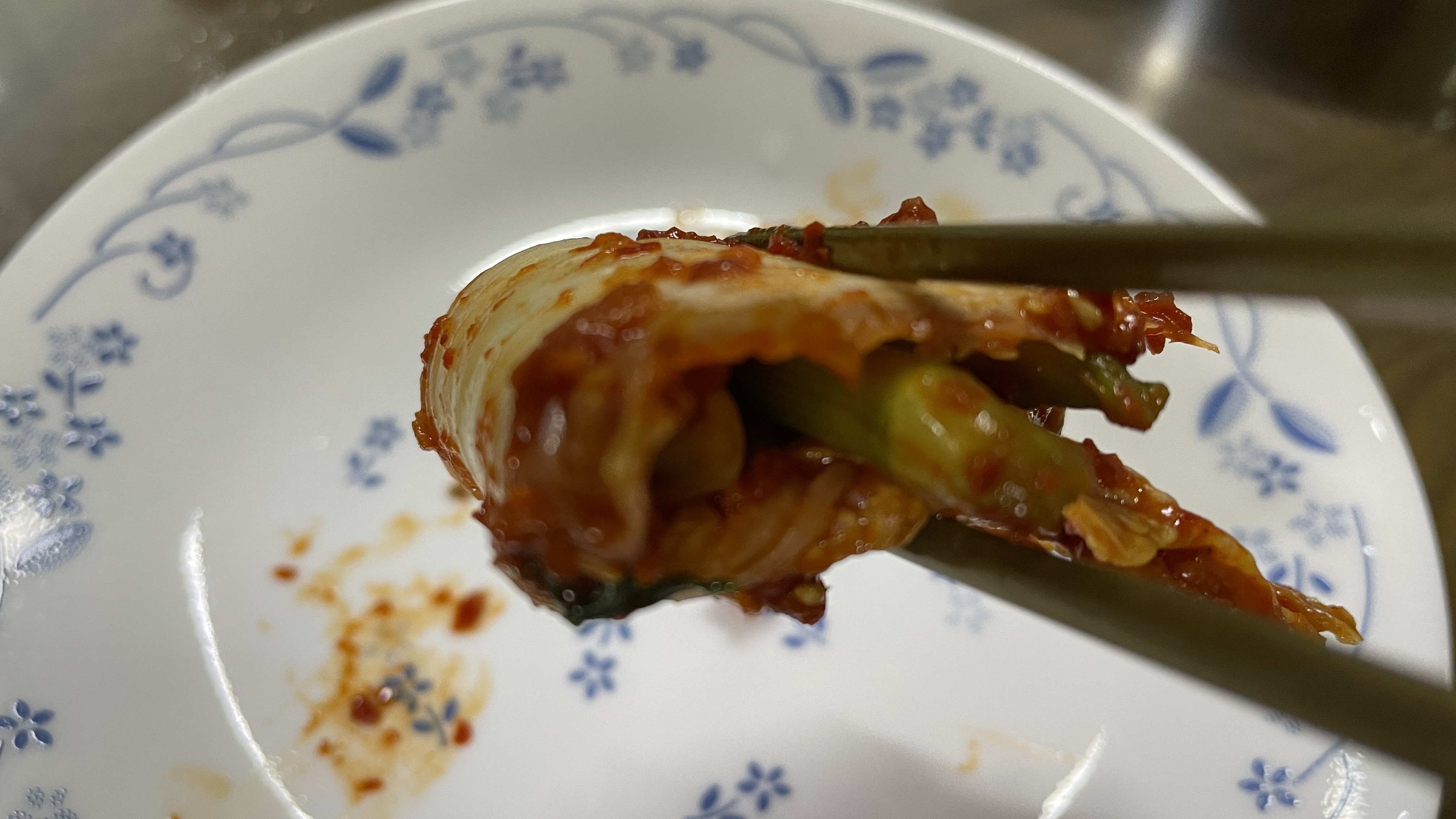 김치에 굴 하나 올리고 미나리까지