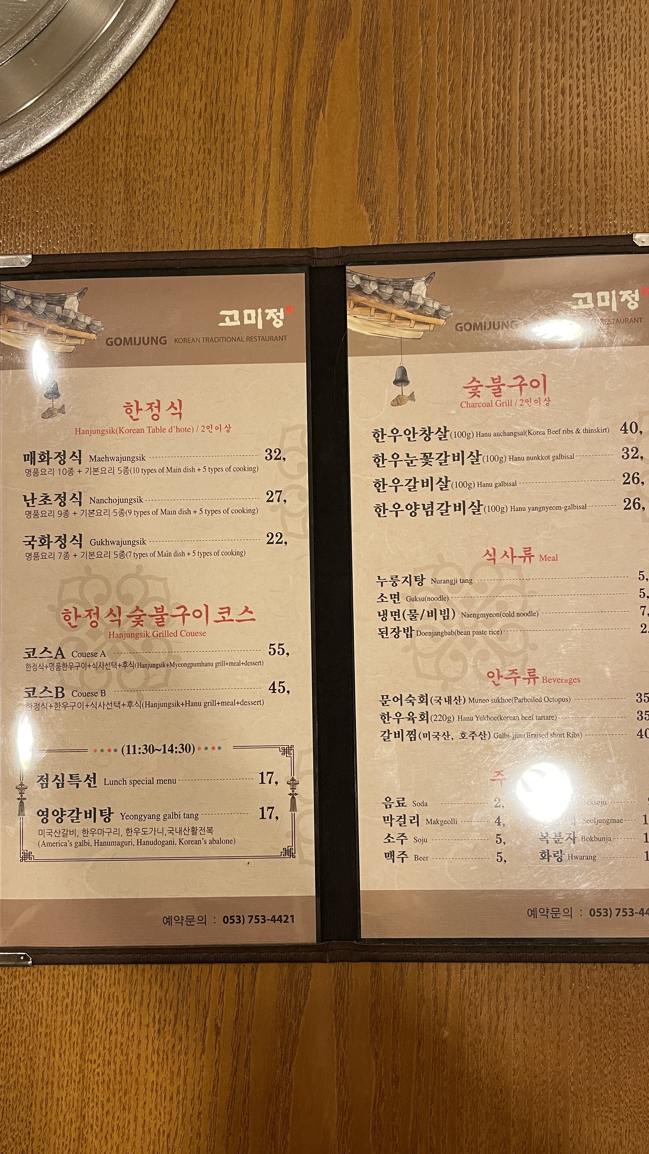 고미정은 한정식 메뉴도 있고