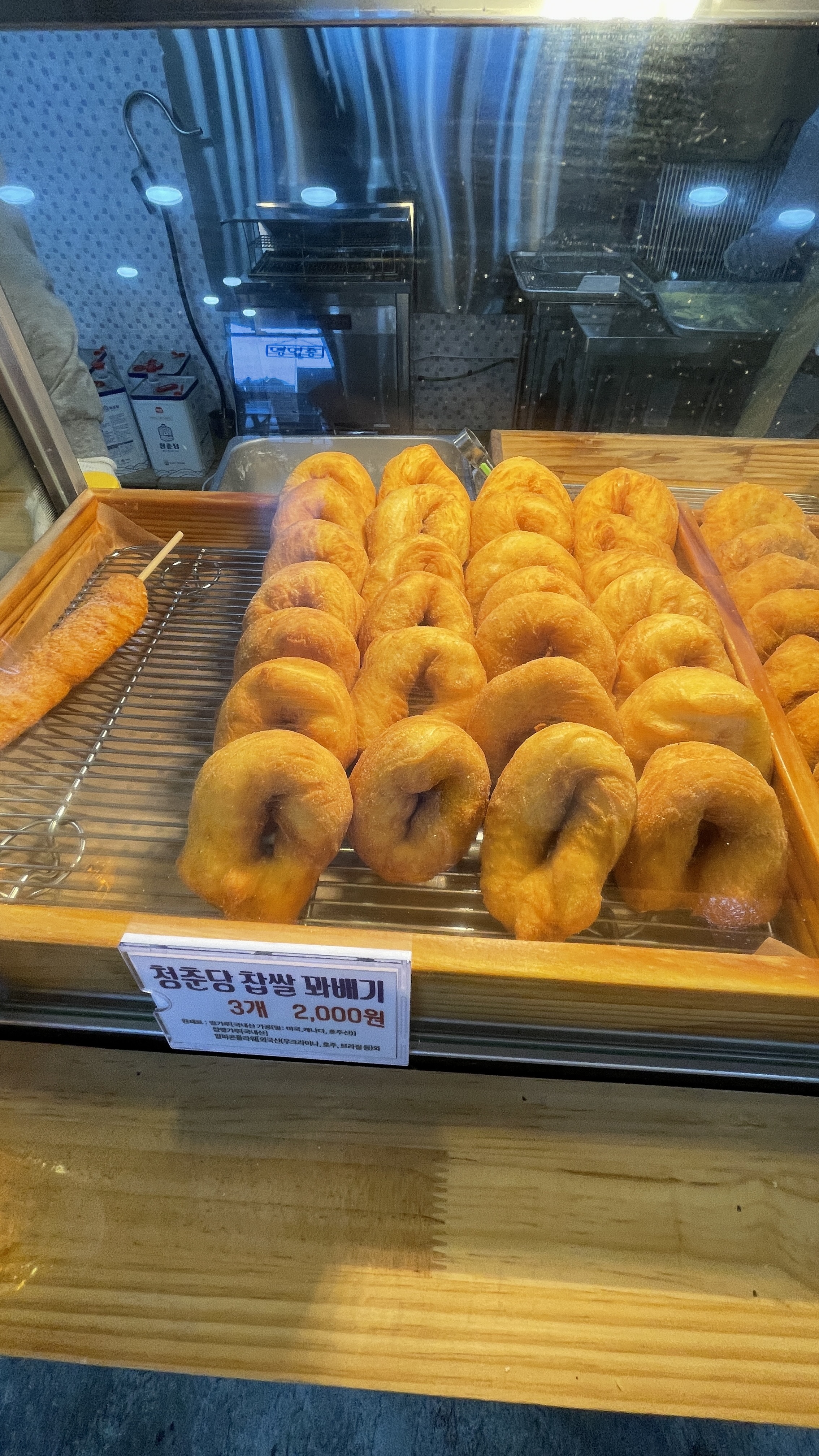 입구에 진열된 청춘당의 꽈배기와 도너츠 등