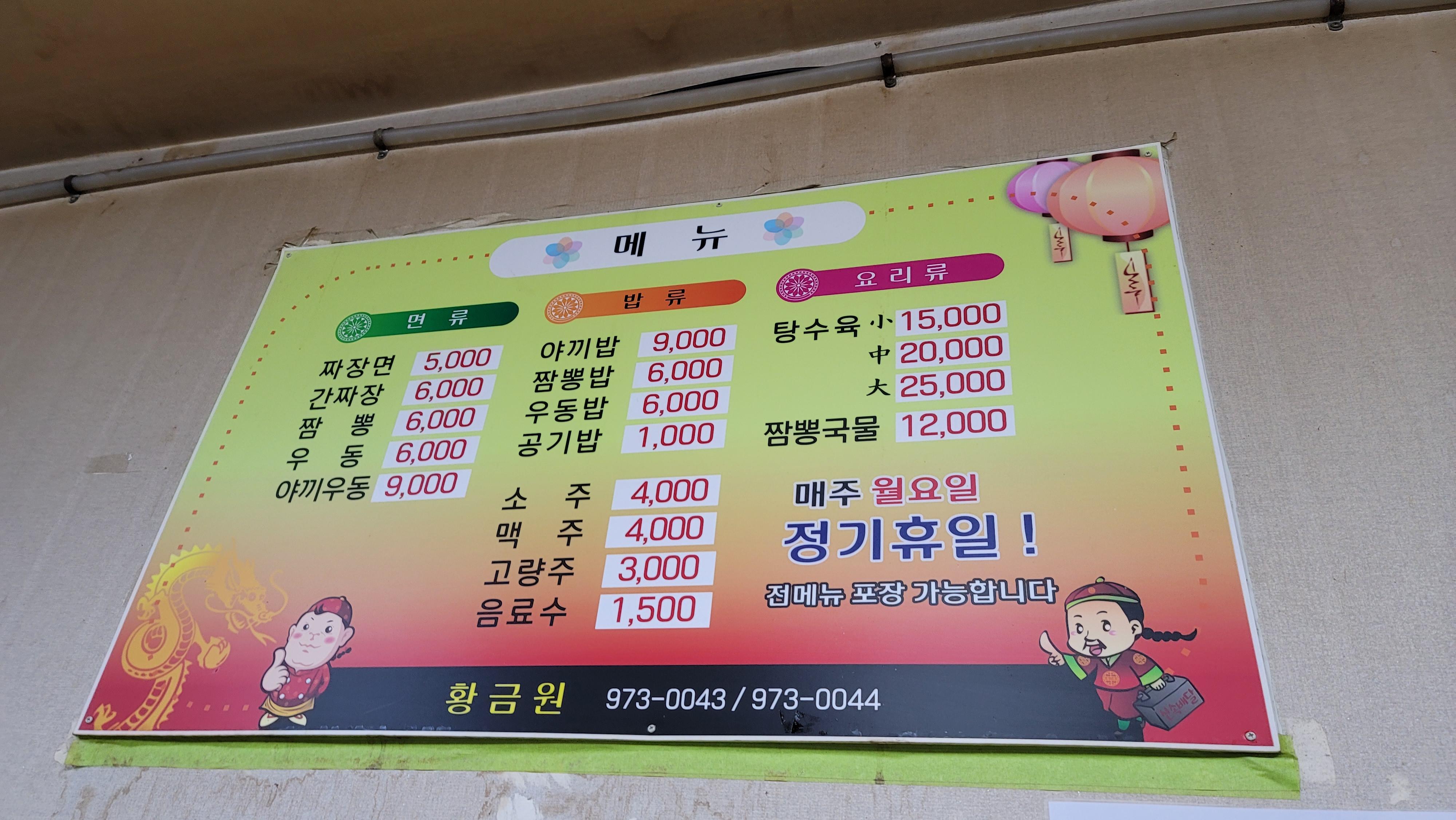 (왜관 황금원은 매주 월요일 정기휴무