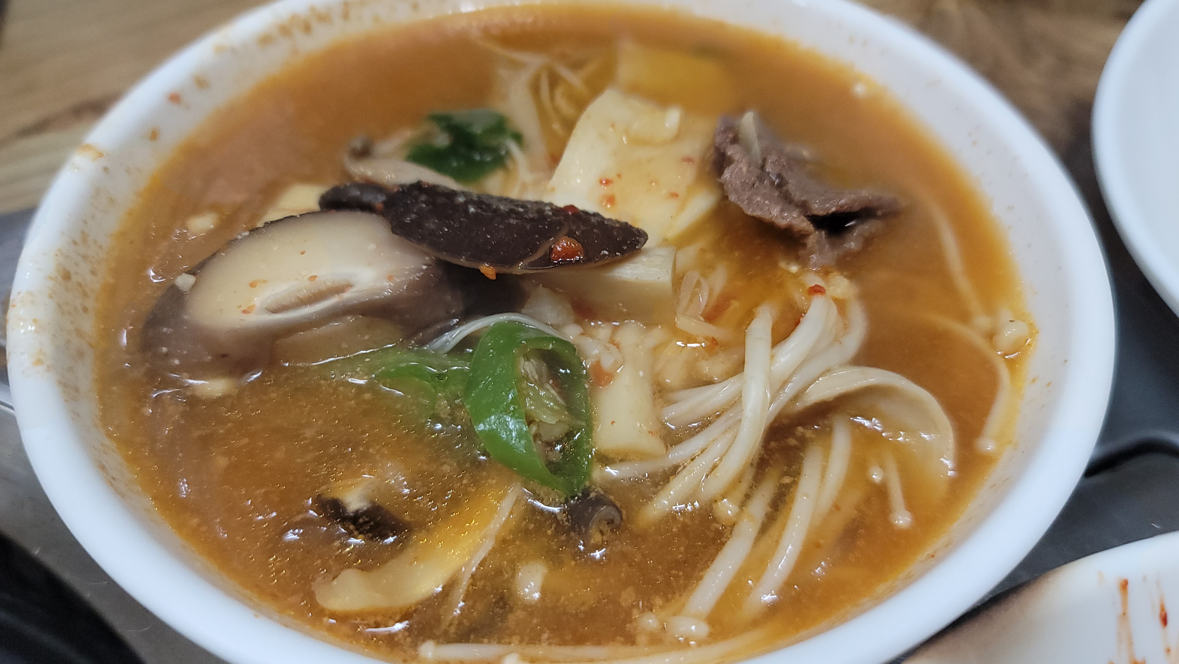 저희는 버섯전골과 김치찌개를 주문했습니다.