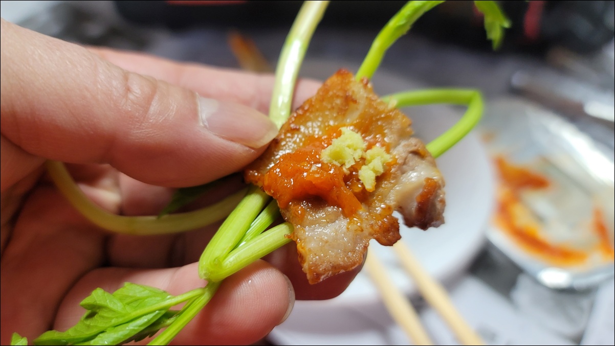 영국사 구경하고 숙소에서 친구와 삼겹살과 미나리로 만찬을 즐겼습니다.