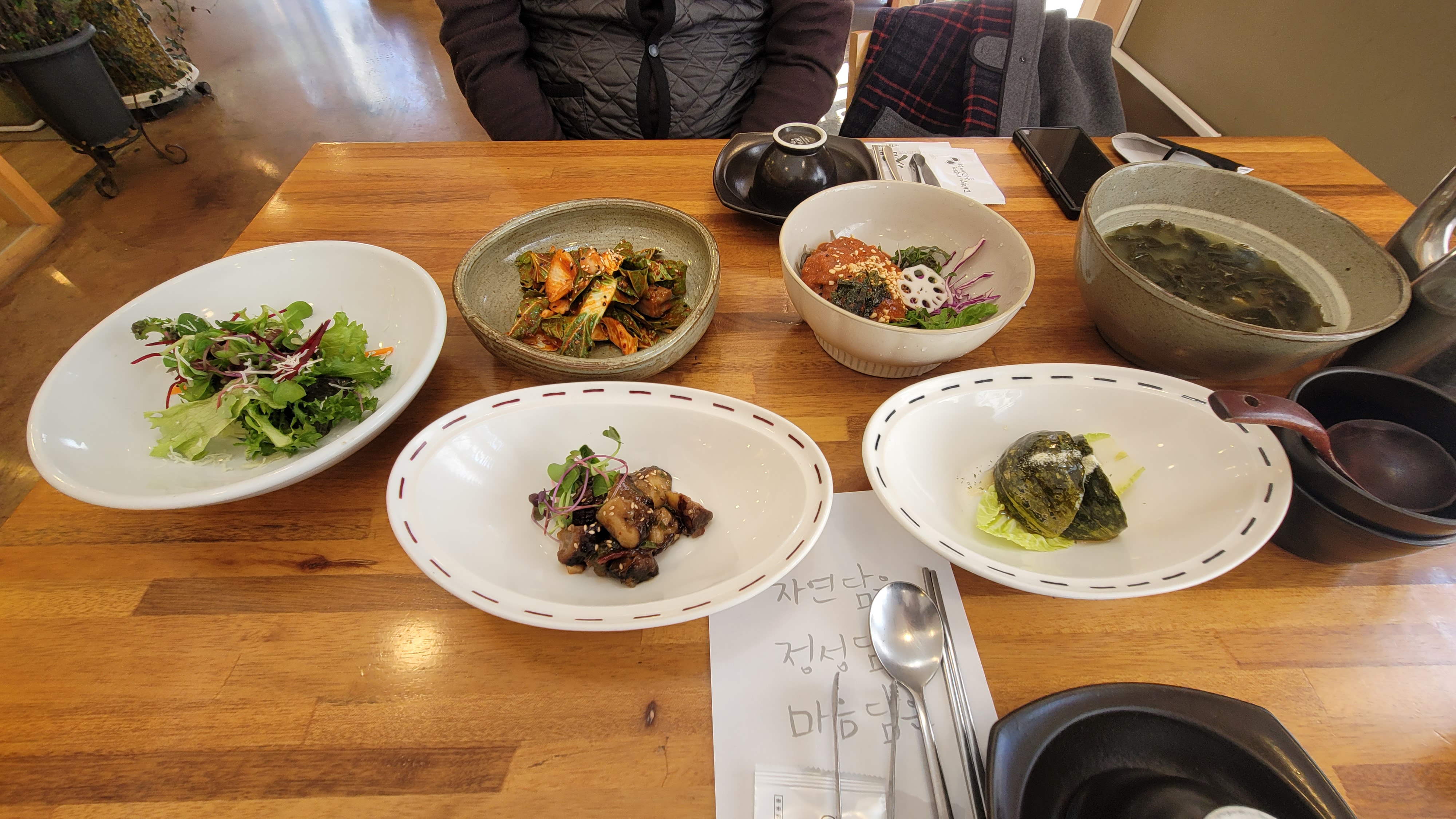 샐러드, 버섯, 겉절이, 호박, 미역 국 등