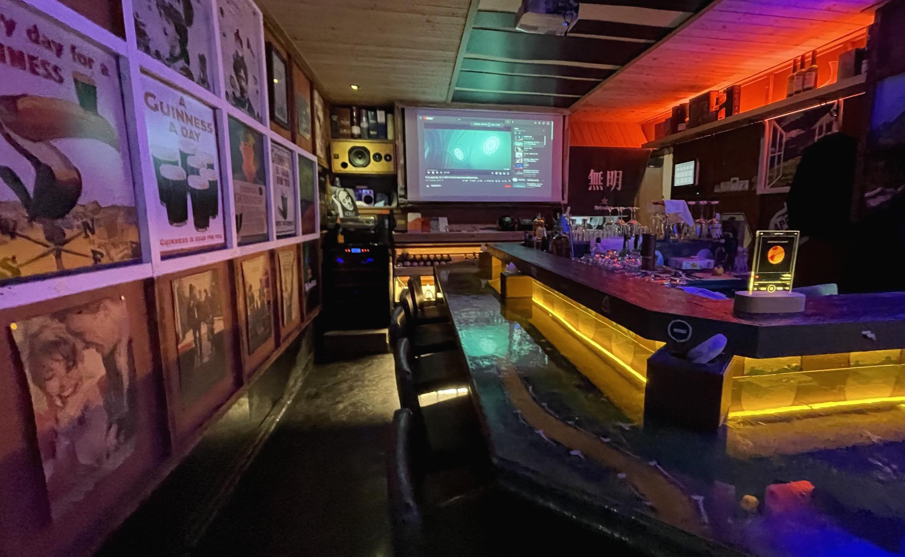 무명(無明)이라는 현수막이 간판을 대신하고 있습니다.