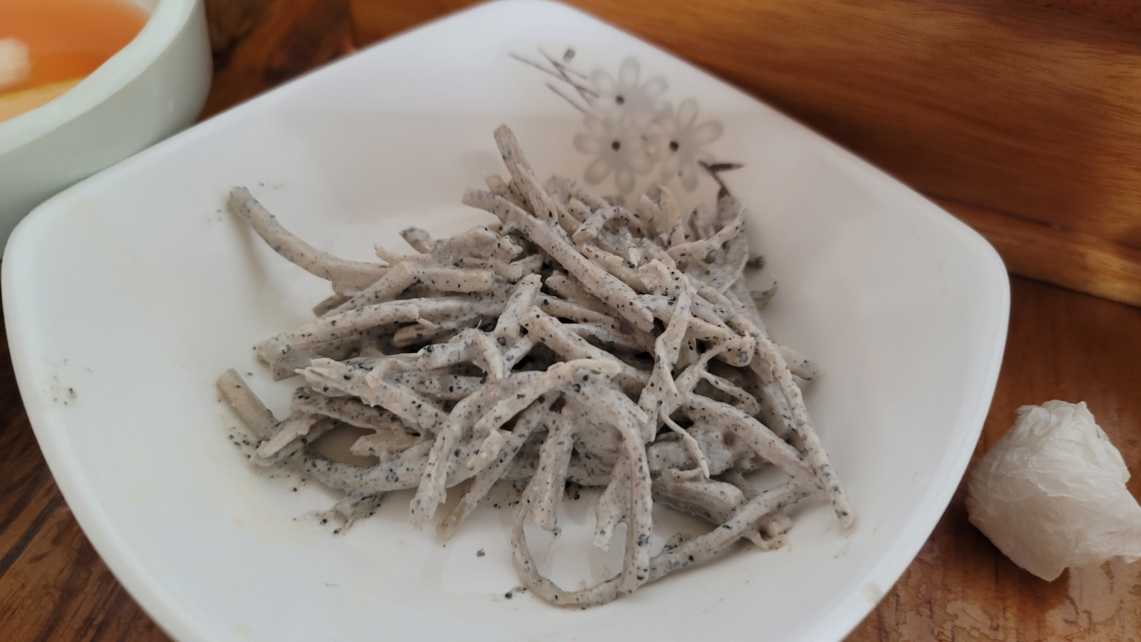 거기에다가 튀김, 양념게장, 김치, 도라지 등
