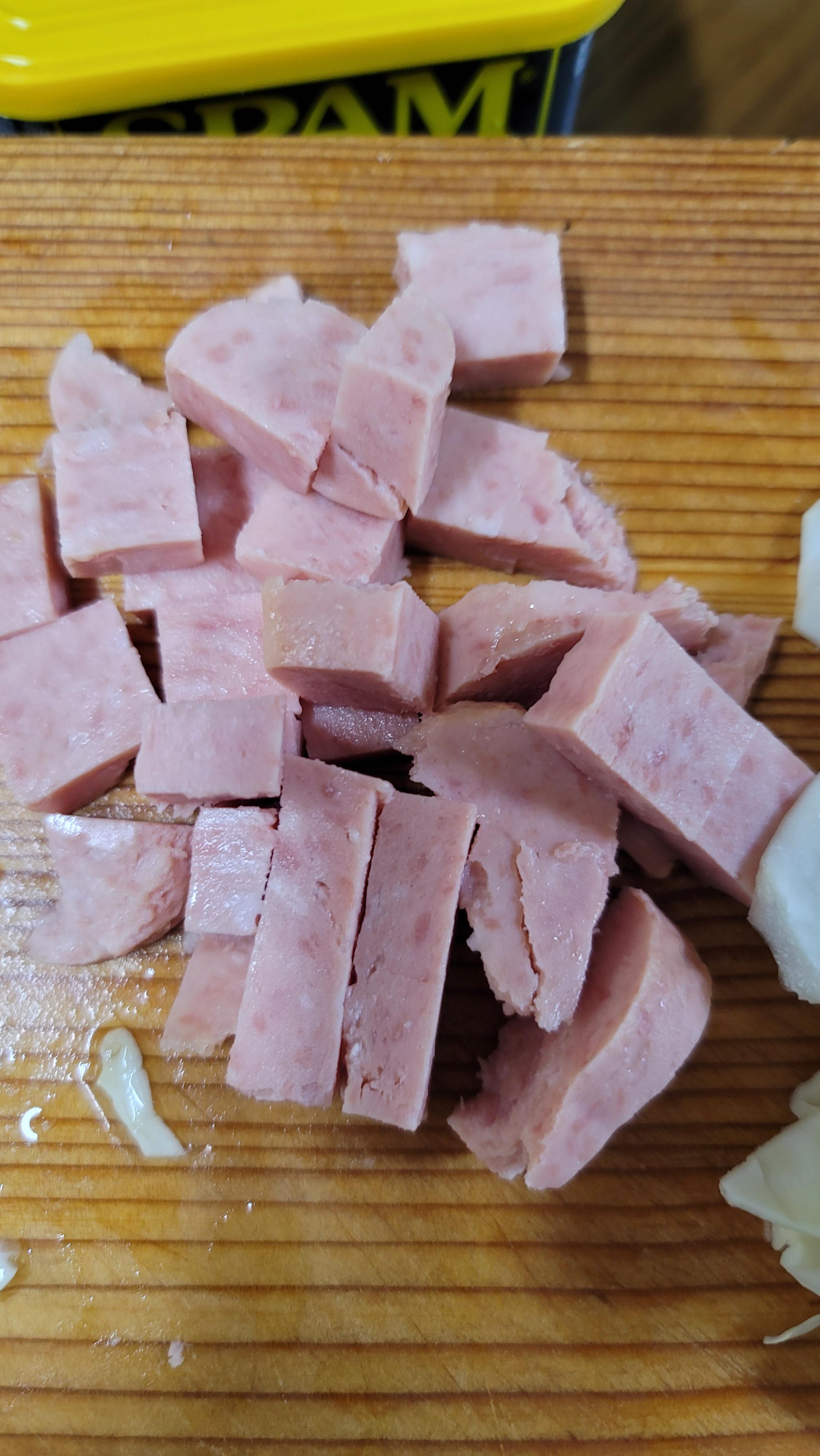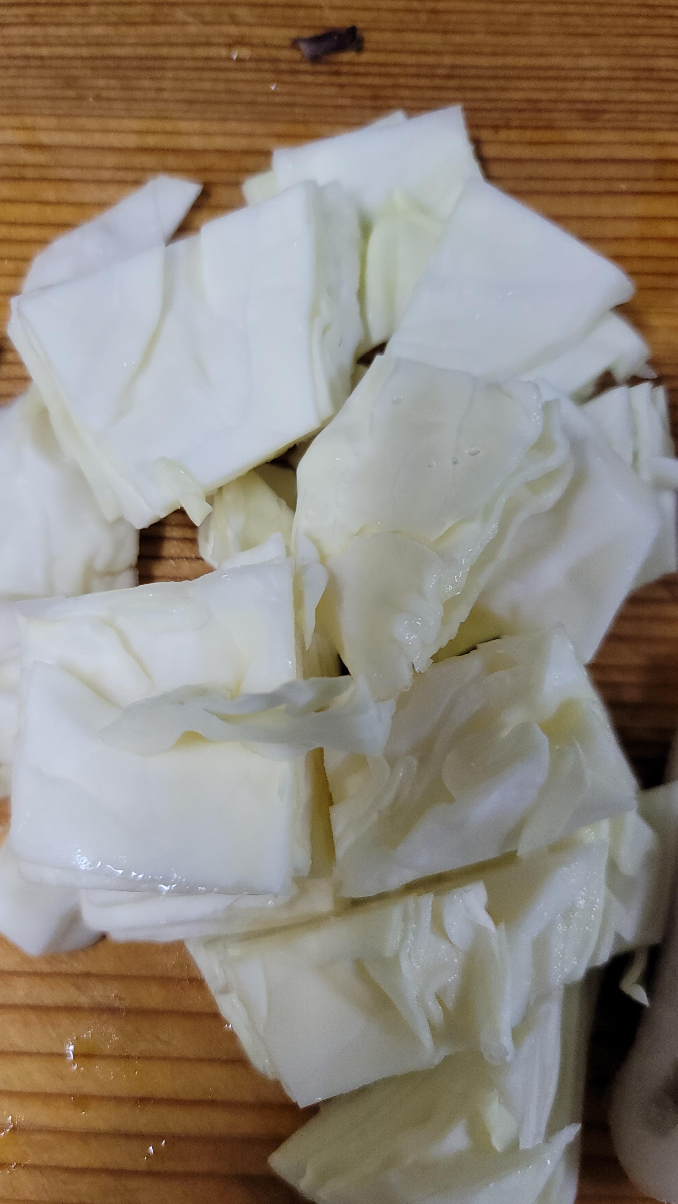 양배추, 오징어, 스팸을 먹을 만큼 썰었습니다.