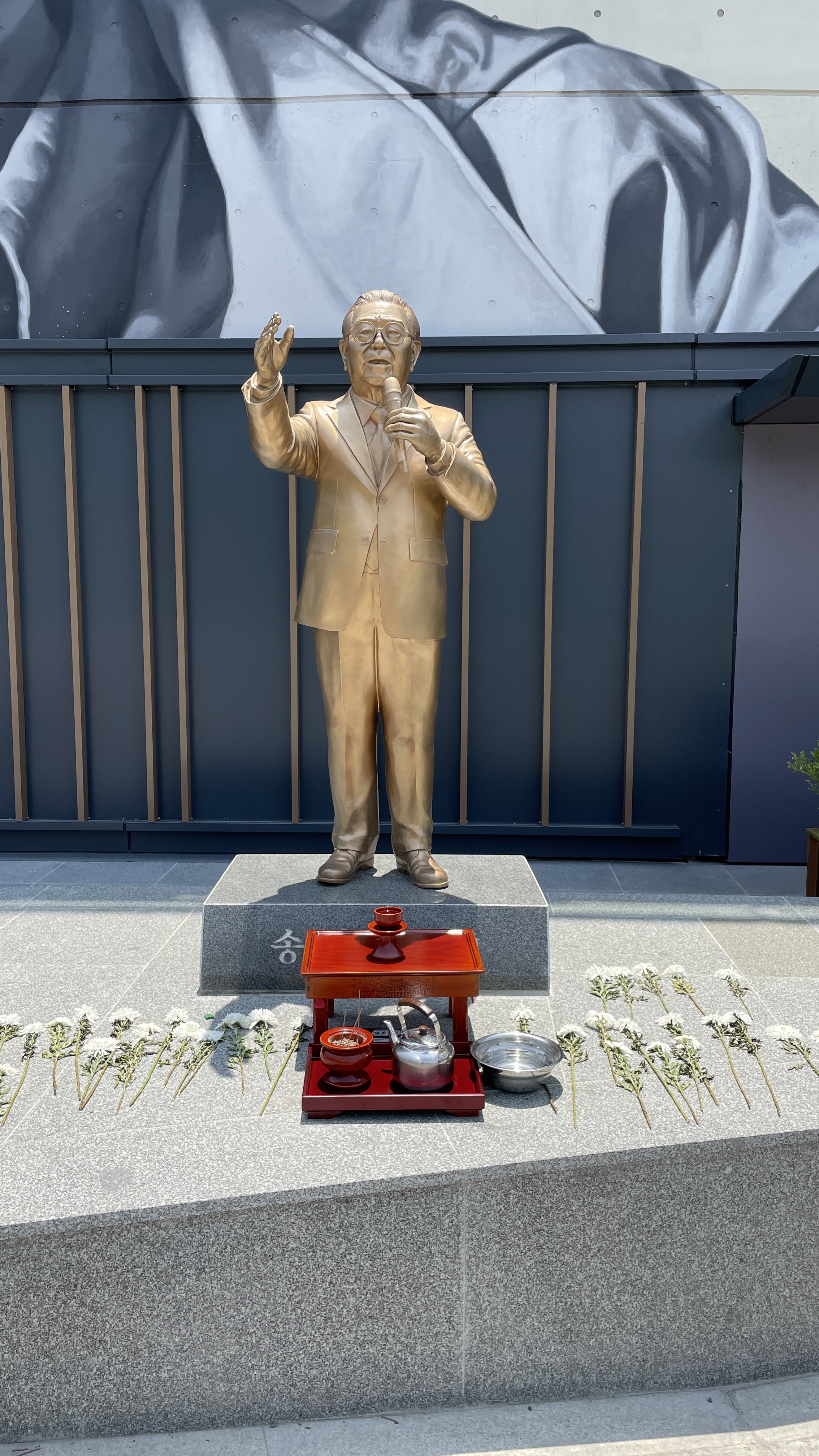 송해선생 동상 앞에는 이렇게 헌화하시면서 분향하시는 분들이 있으셨습니다.