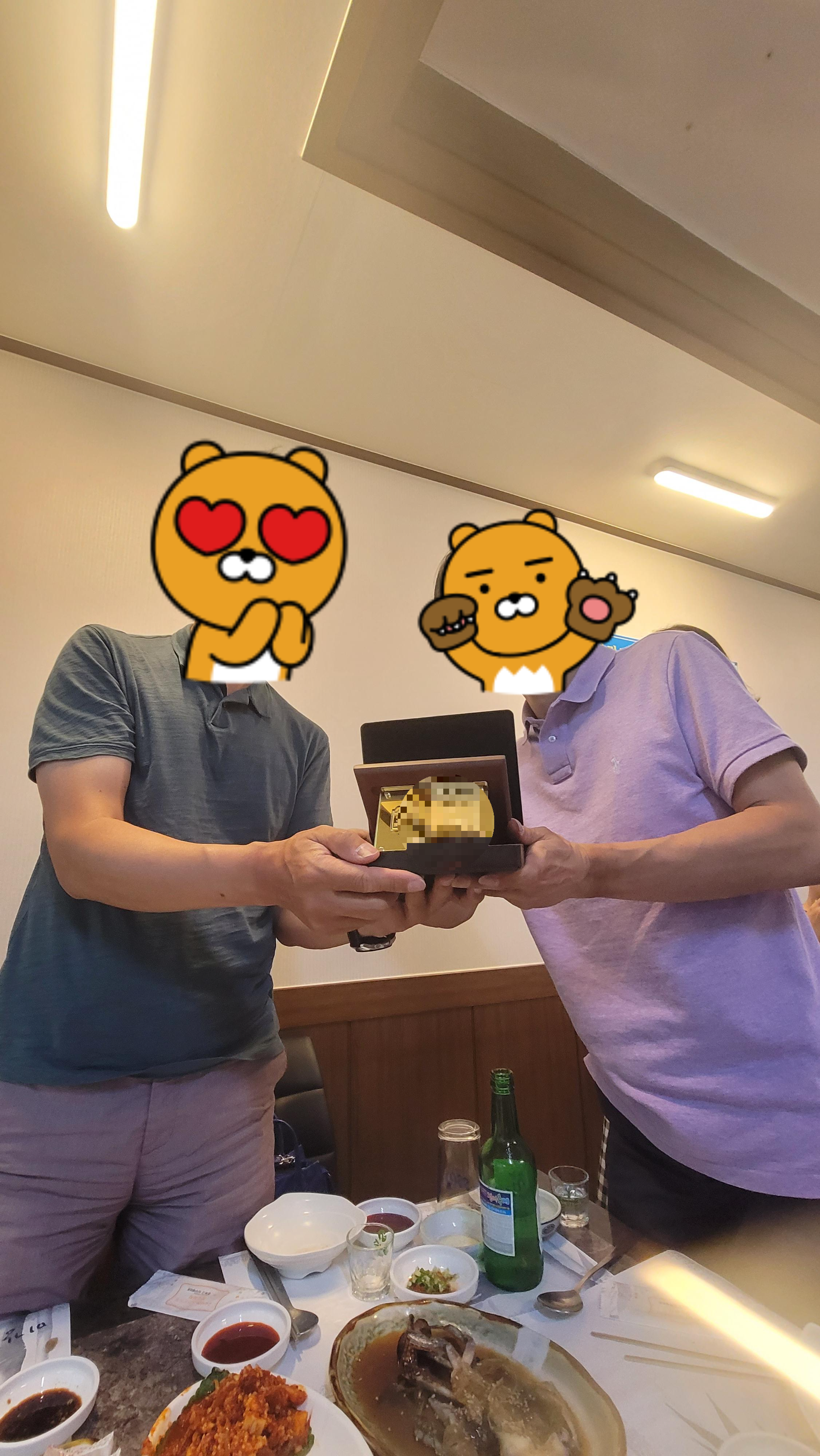 기념패를 만든 친구가 도착하자 말자