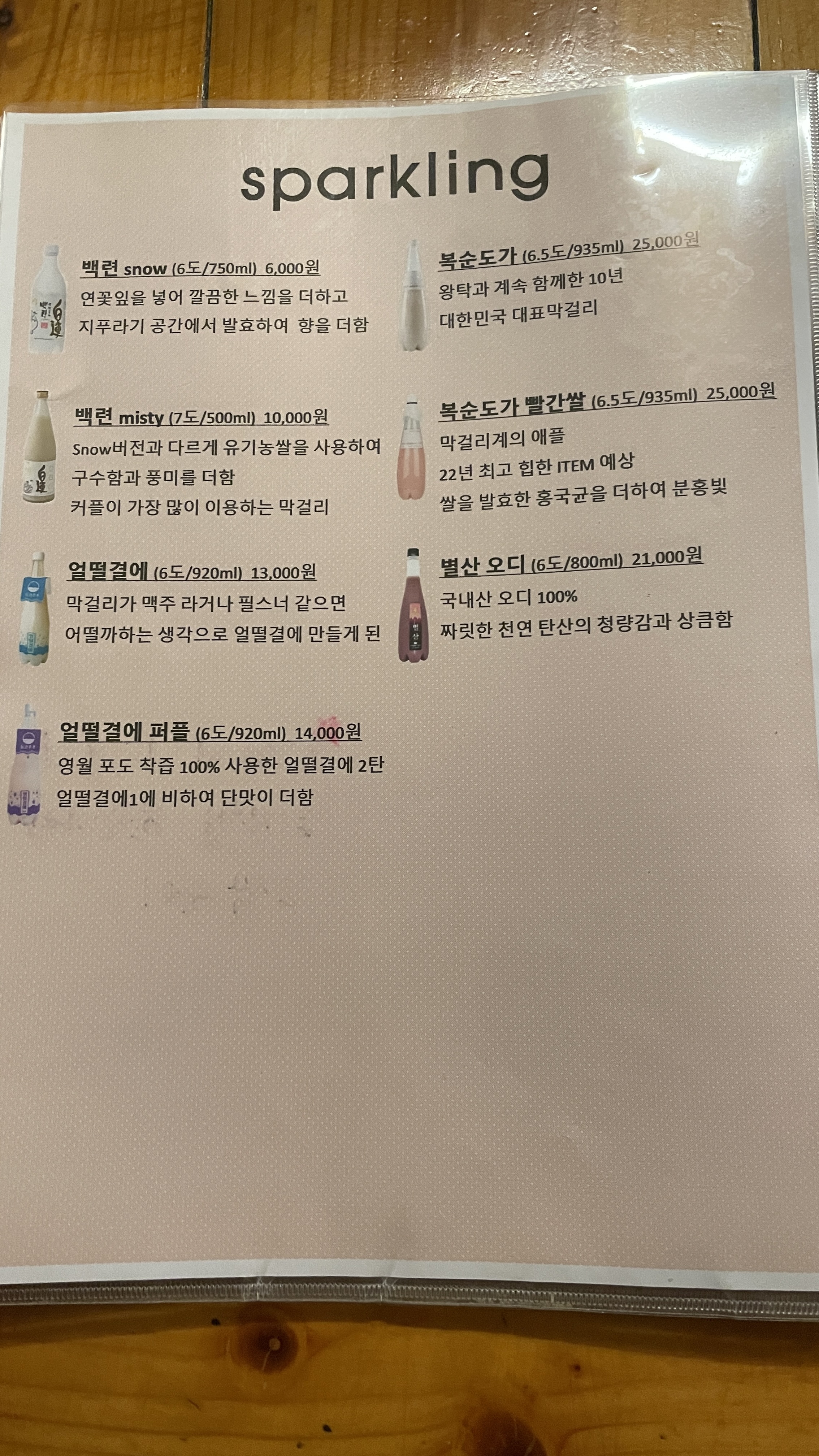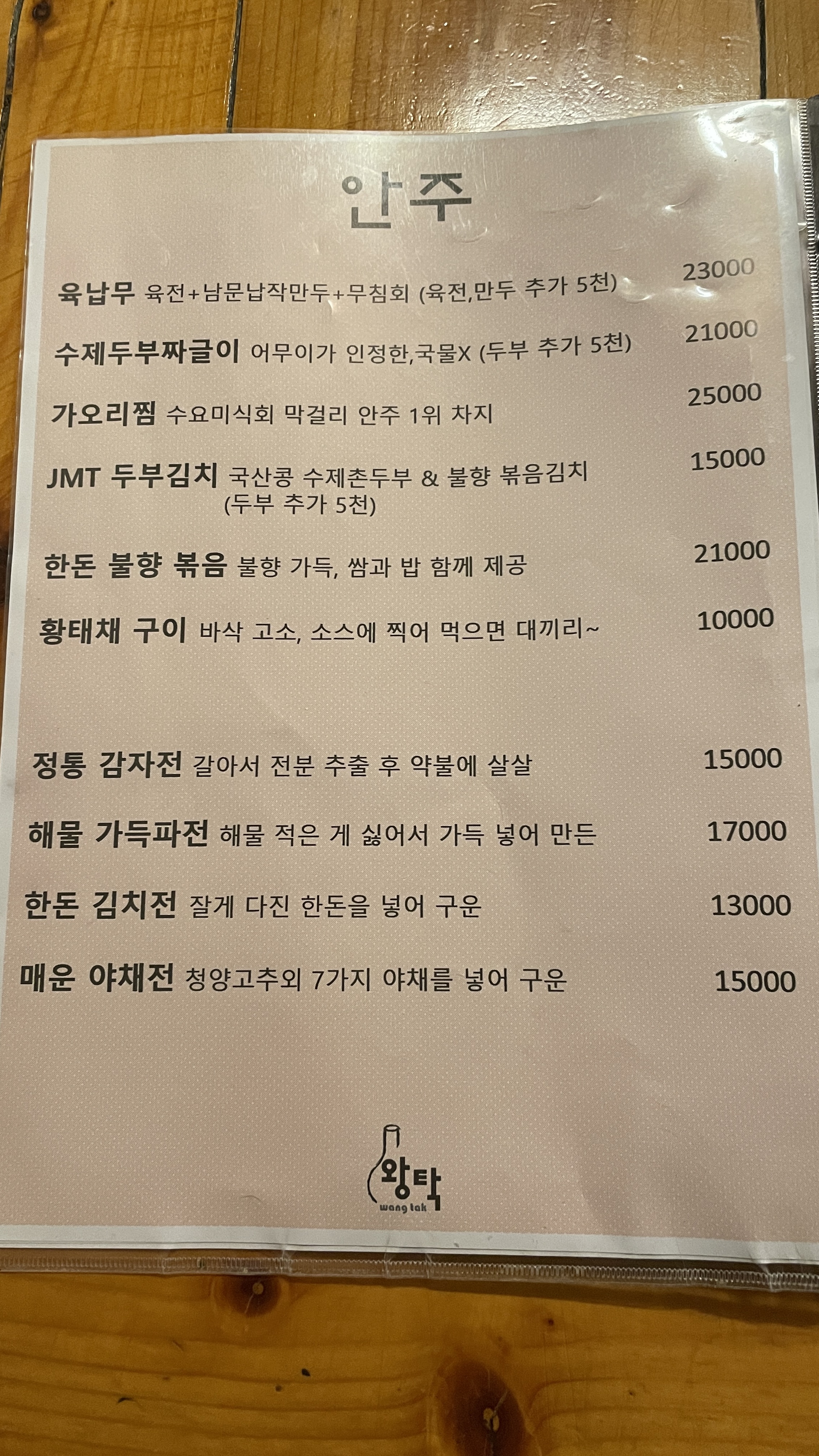 왕탁에서는 막걸리 종류에 따라 다른 잔을 주시는 것 같던데 이것도 막걸리를 마시면서 즐길 수 있는 작은 행복이었습니다.