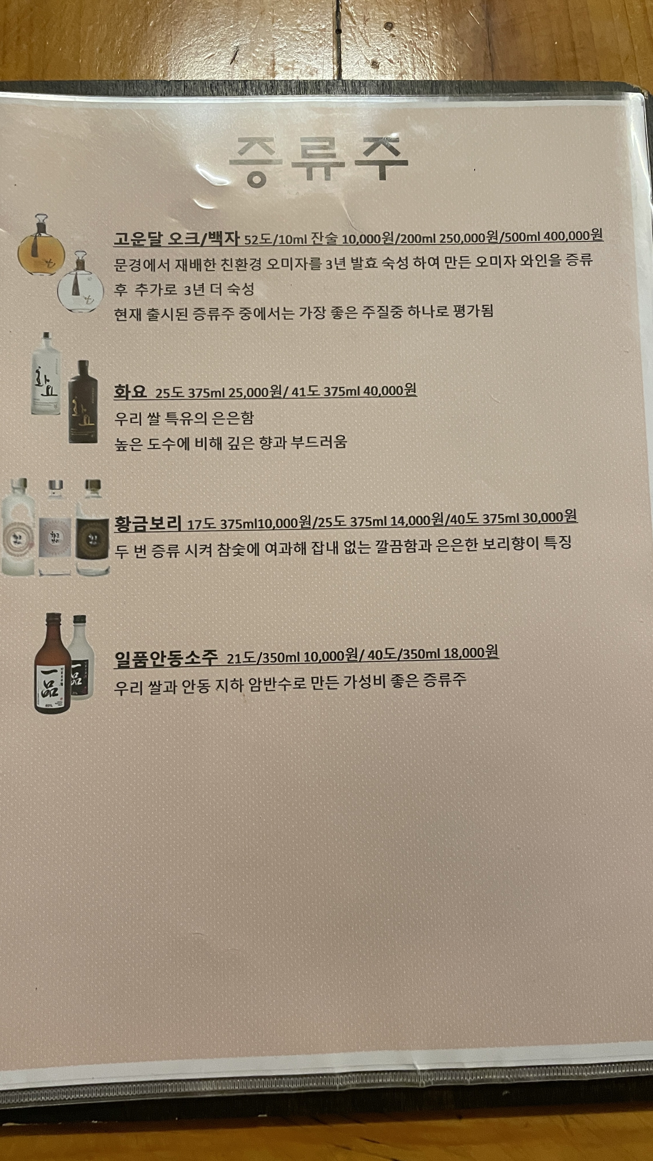 고운달오크/백자, 화요, 황금보리, 일품안동소주
