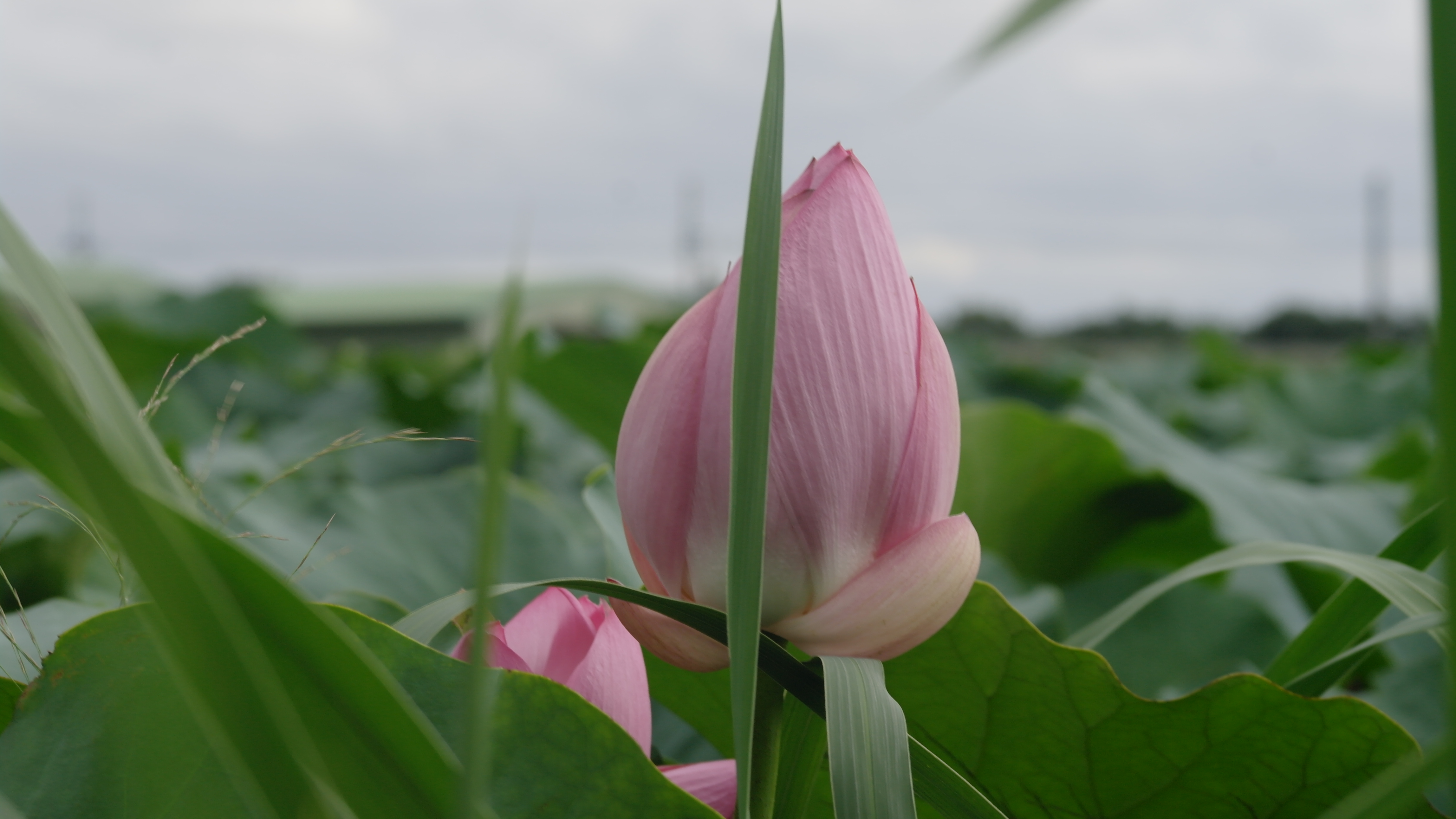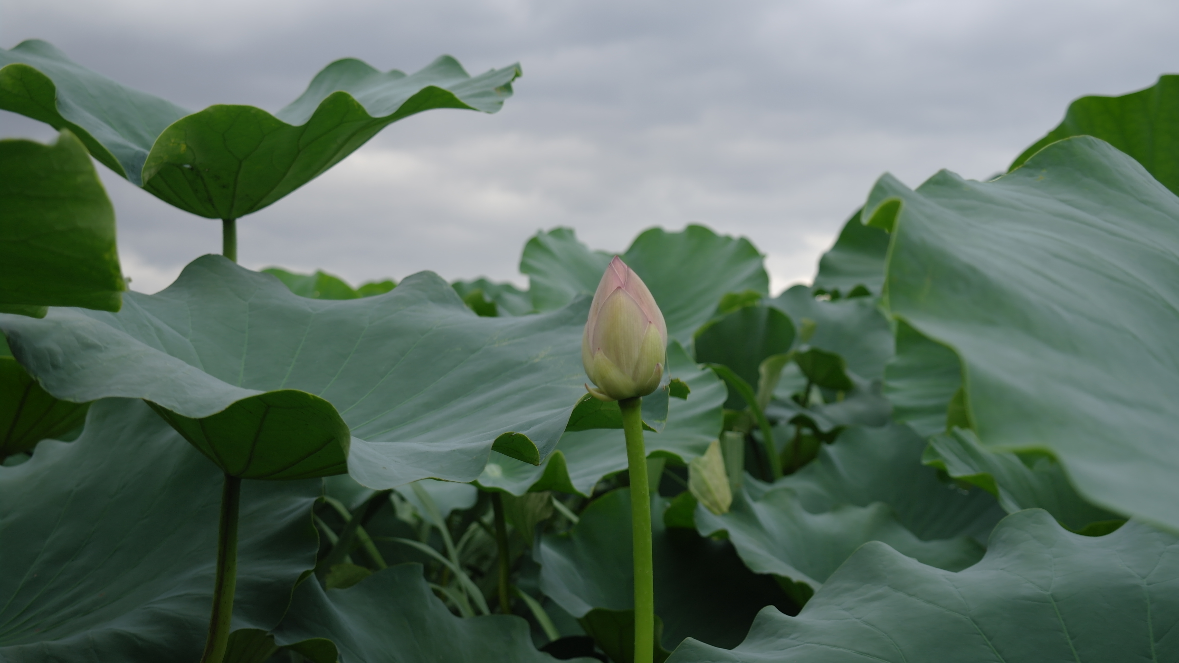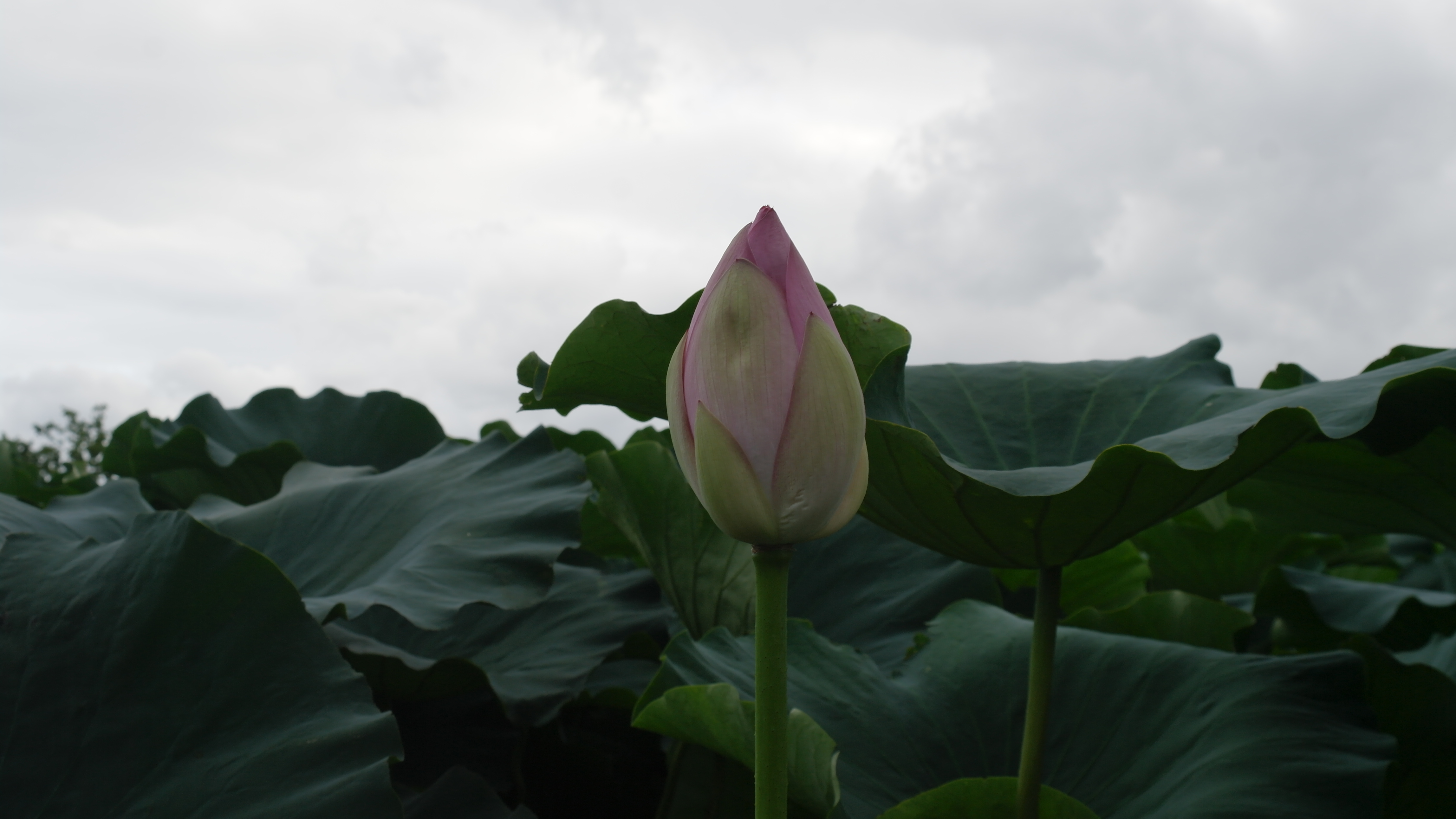 연잎 사이로 볼록 솟아 있는 연꽃이 참 귀엽습니다.