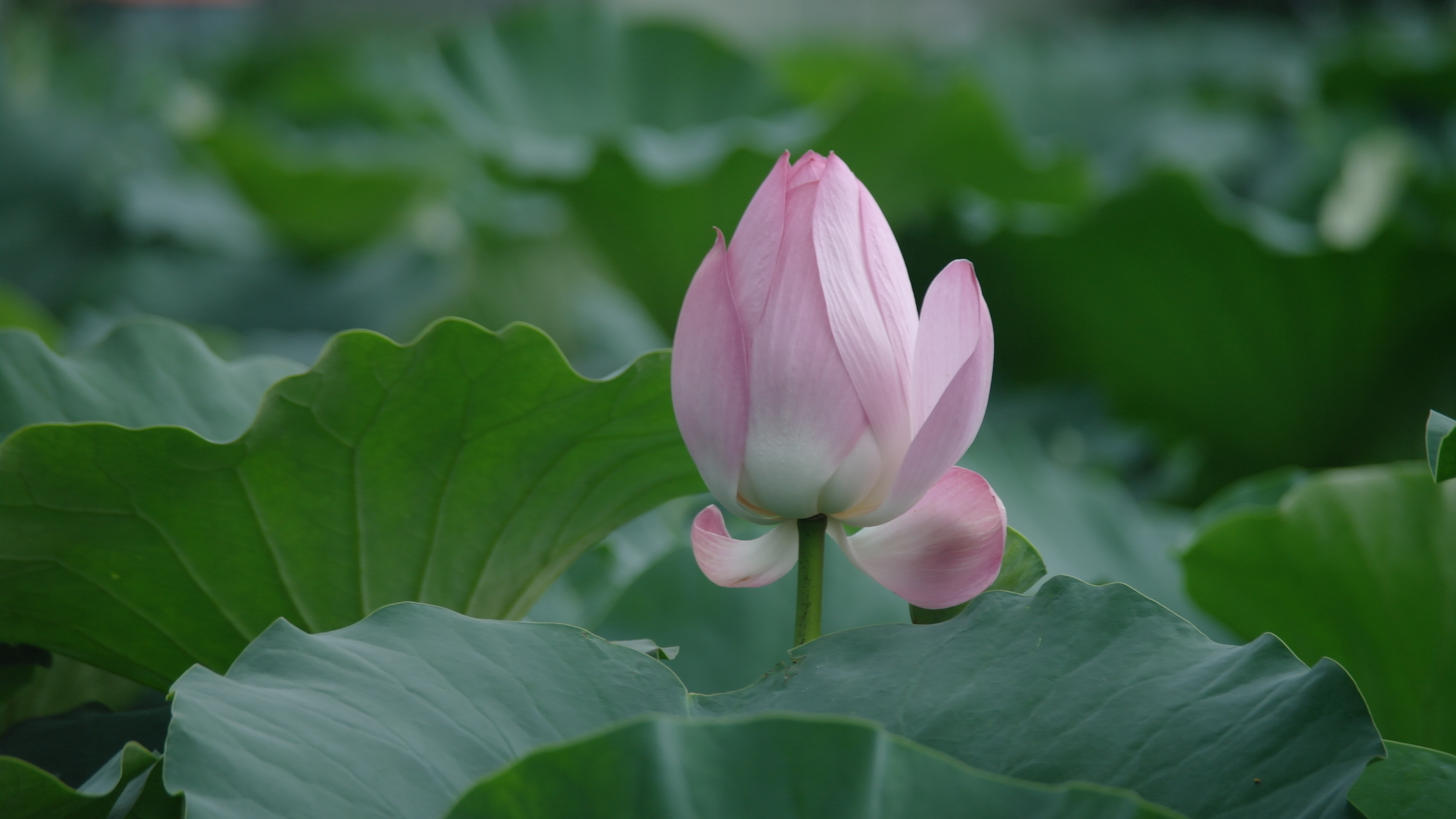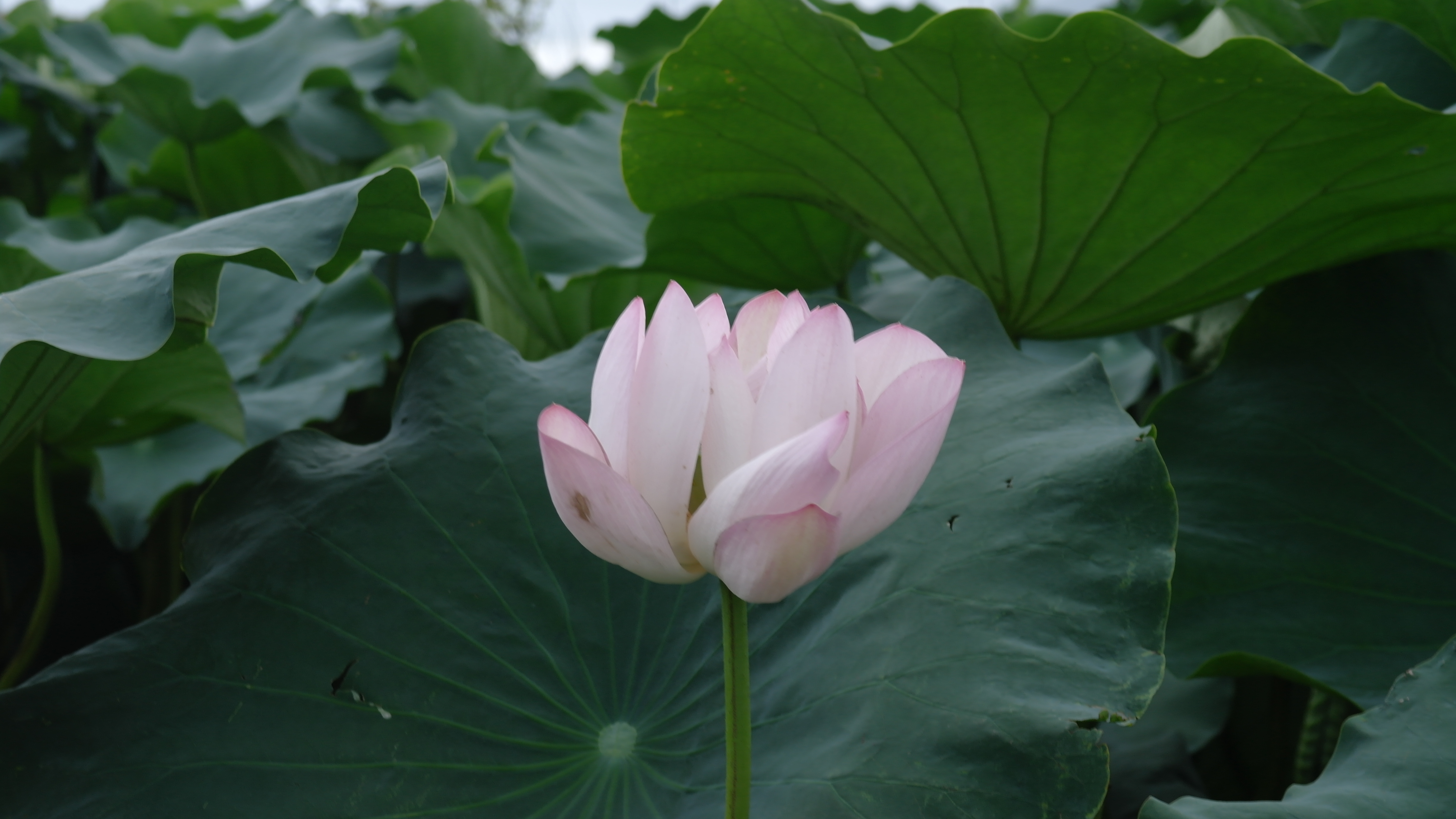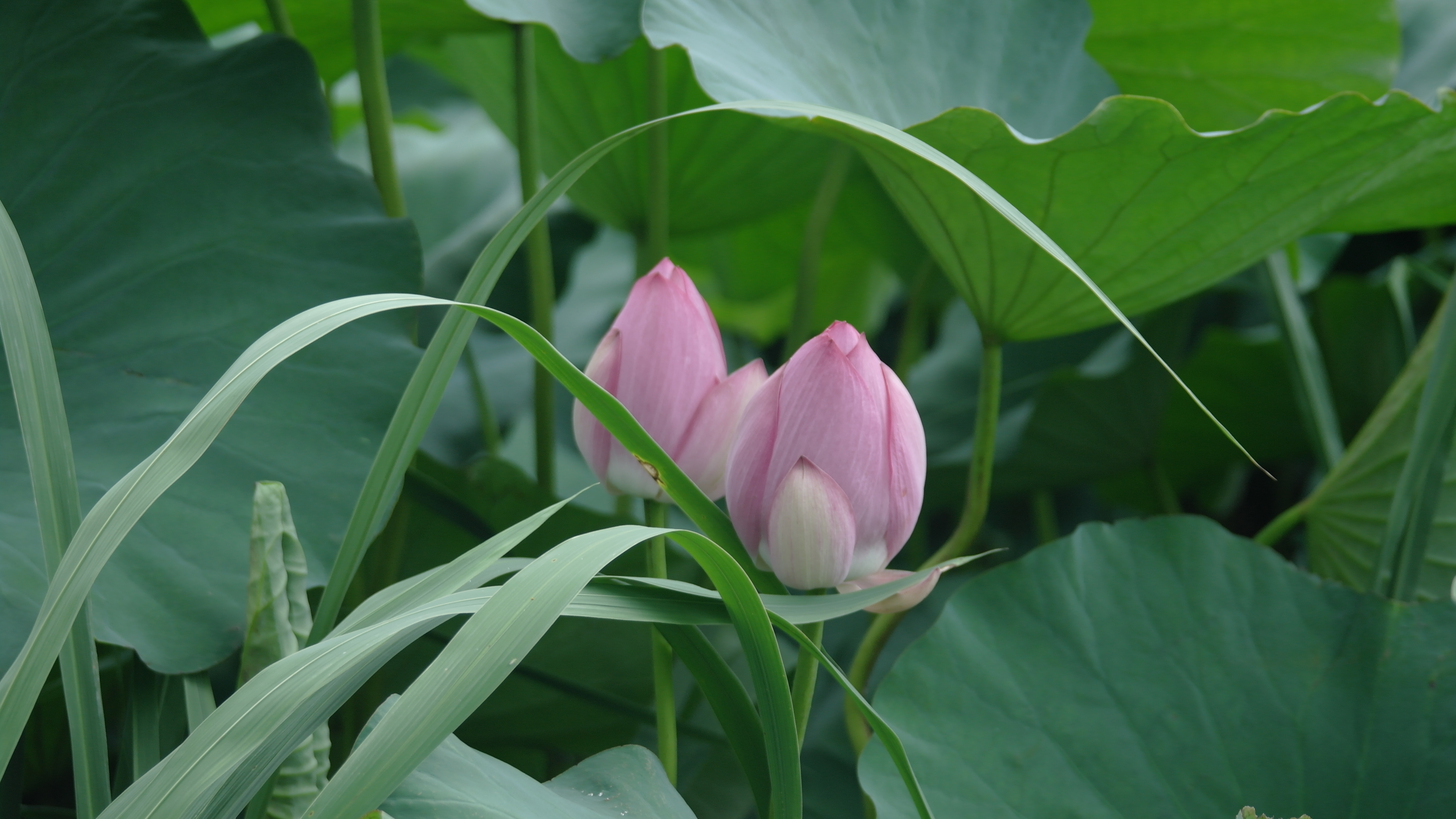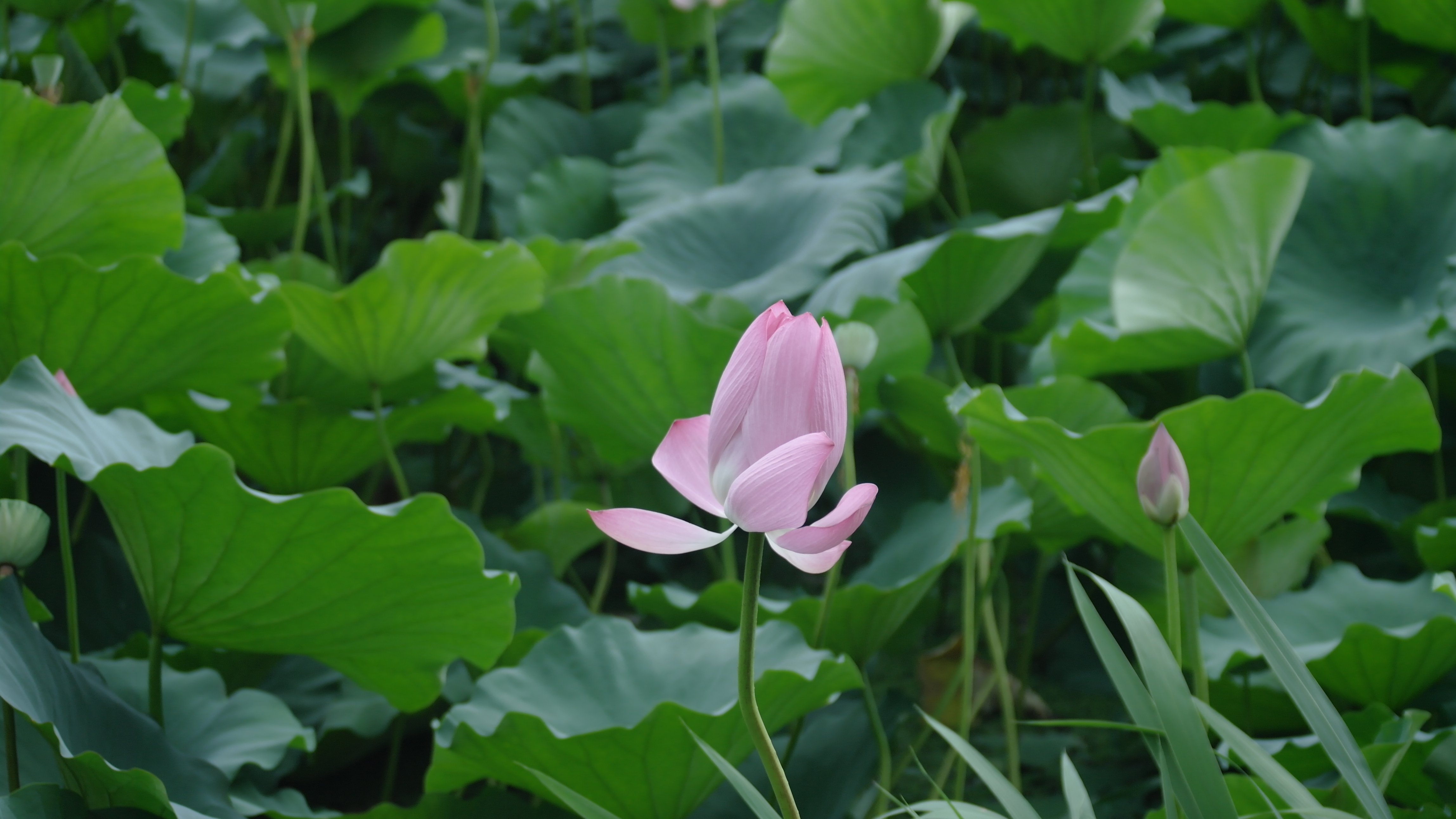 연잎 사이로 볼록 솟아 있는 연꽃이 참 귀엽습니다.