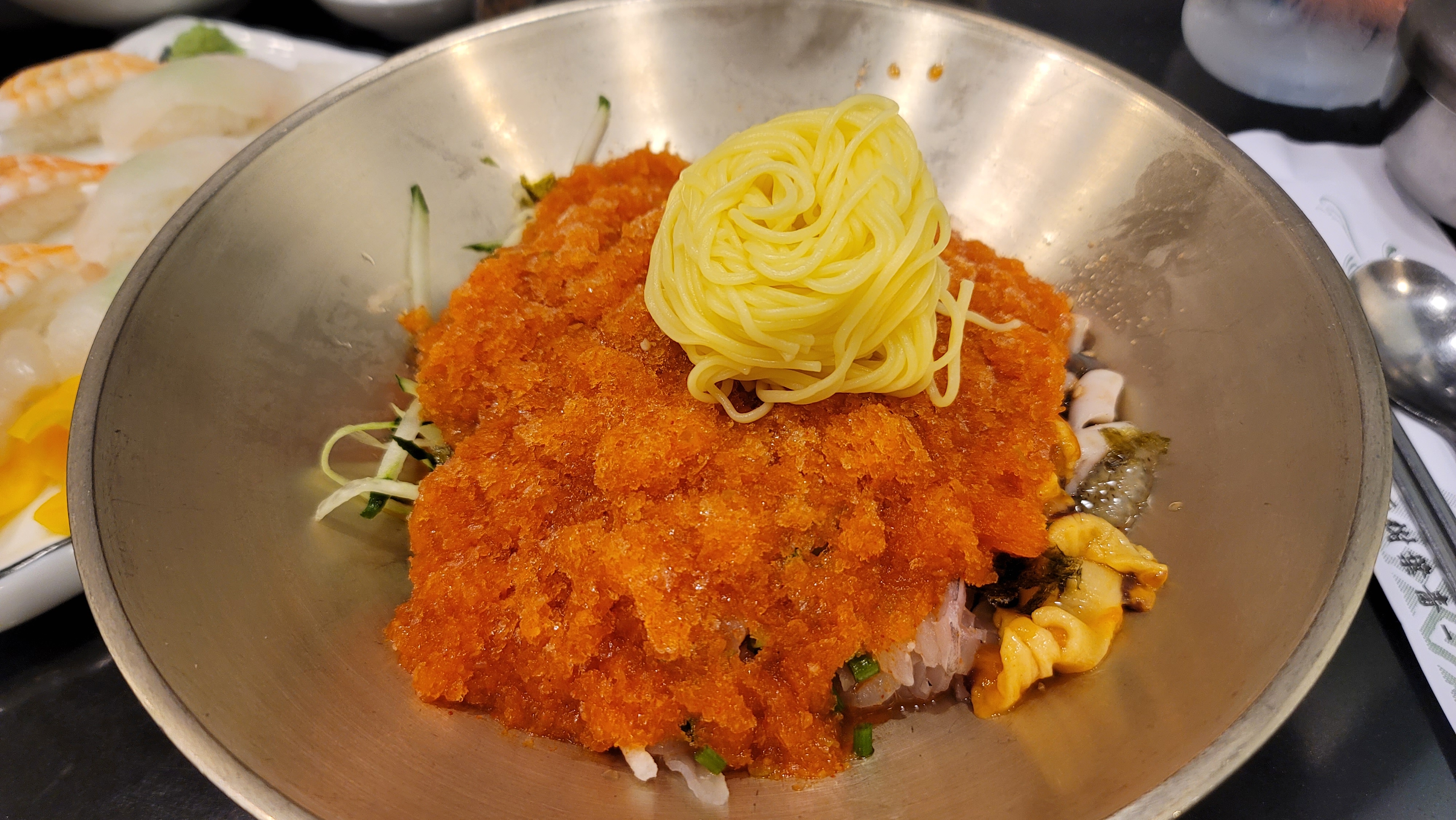물회에 해산물 3종과 초밥 2p 가 추가된다는 것이었습니다.