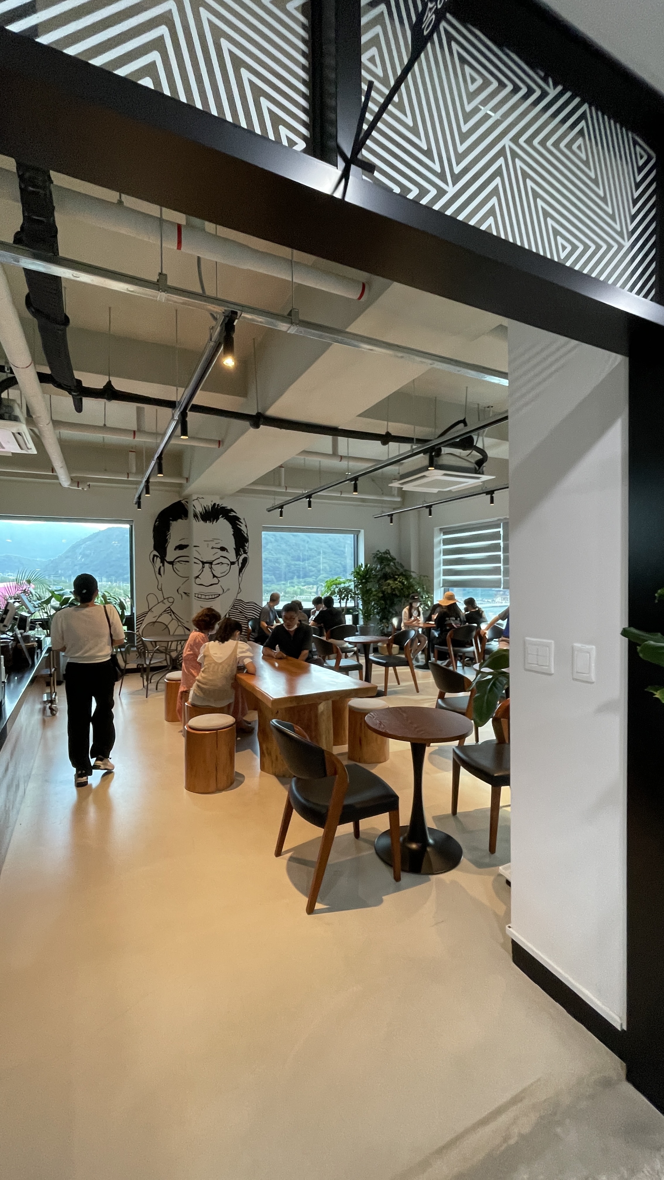 야외 테라스(하늘정원)에 자리를 잡았습니다.