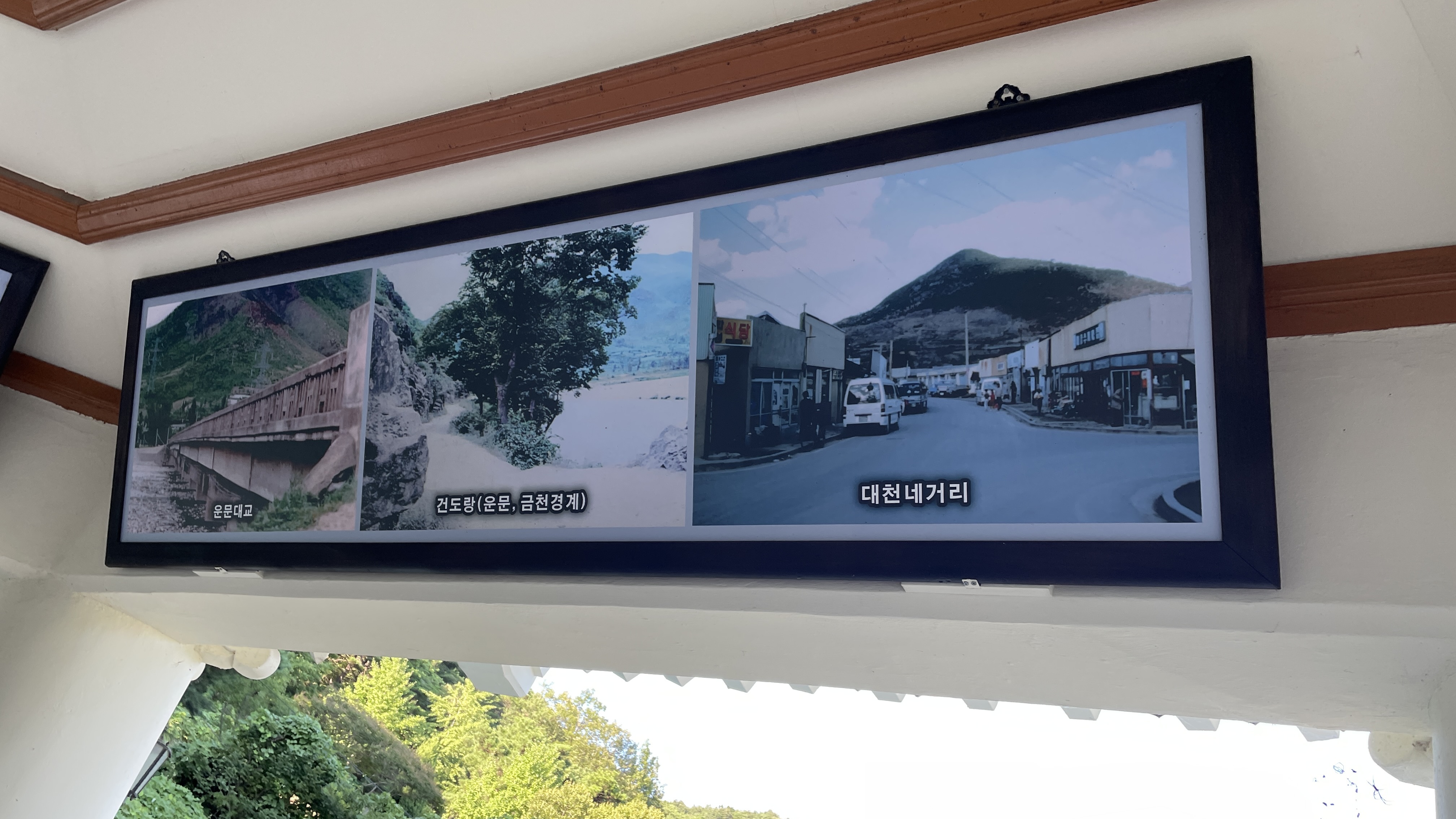 아마도 운문댐이 건설되면서 수몰되었던 지역 사진인 것 같고 정자 이름도 망향정인 것을 보면 수몰지역을 그리워하는 이들의 마음을 담아 이름 붙인 것 같습니다.(개인적인 추측)