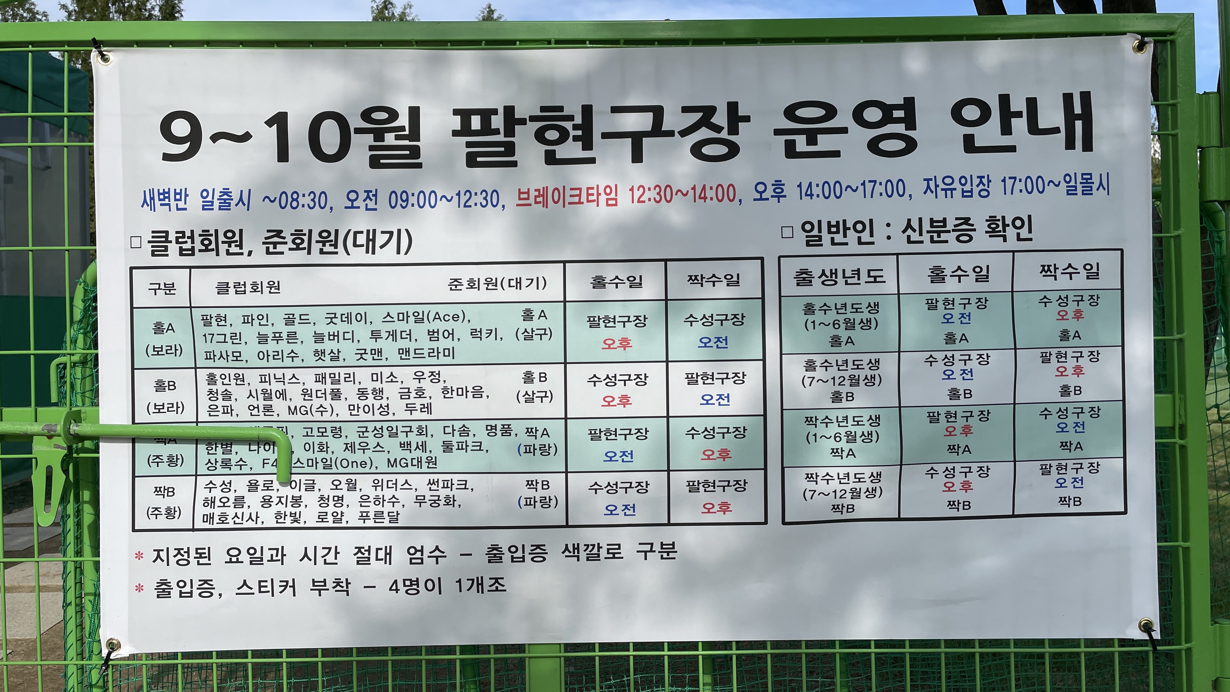 하지만 매월 한 두번이라도 팔현파크골프장에서 라운딩하시면 매월 변경되는 운영일정은 확인하실 수 있을 것 같습니다.