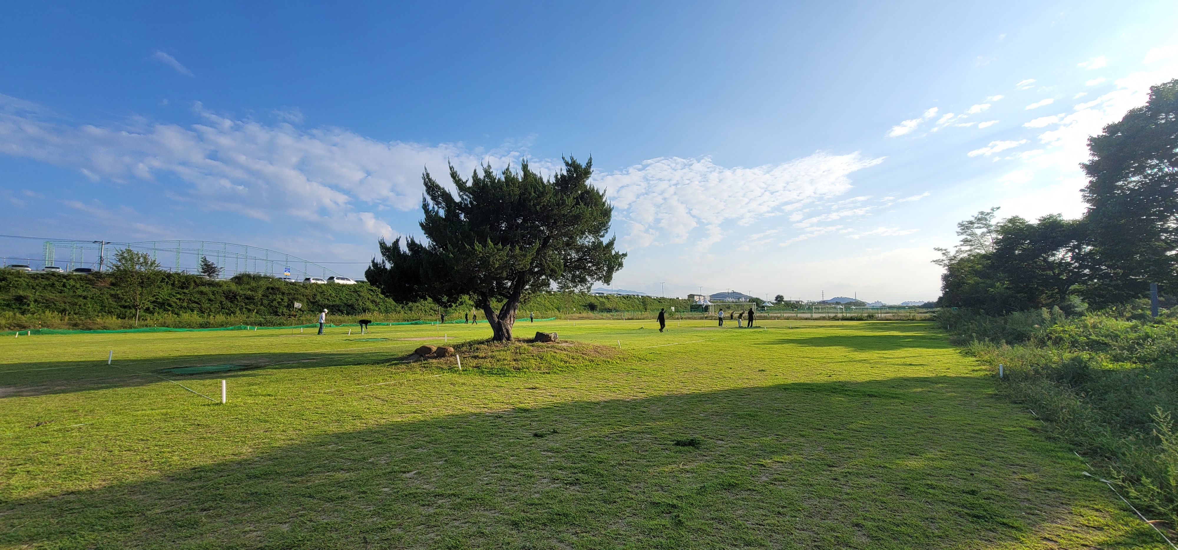 멋진 향나무가 자리를 지키고 있는 이 곳은 검단파크골프장에 속한 18홀 규모의 연습구장
