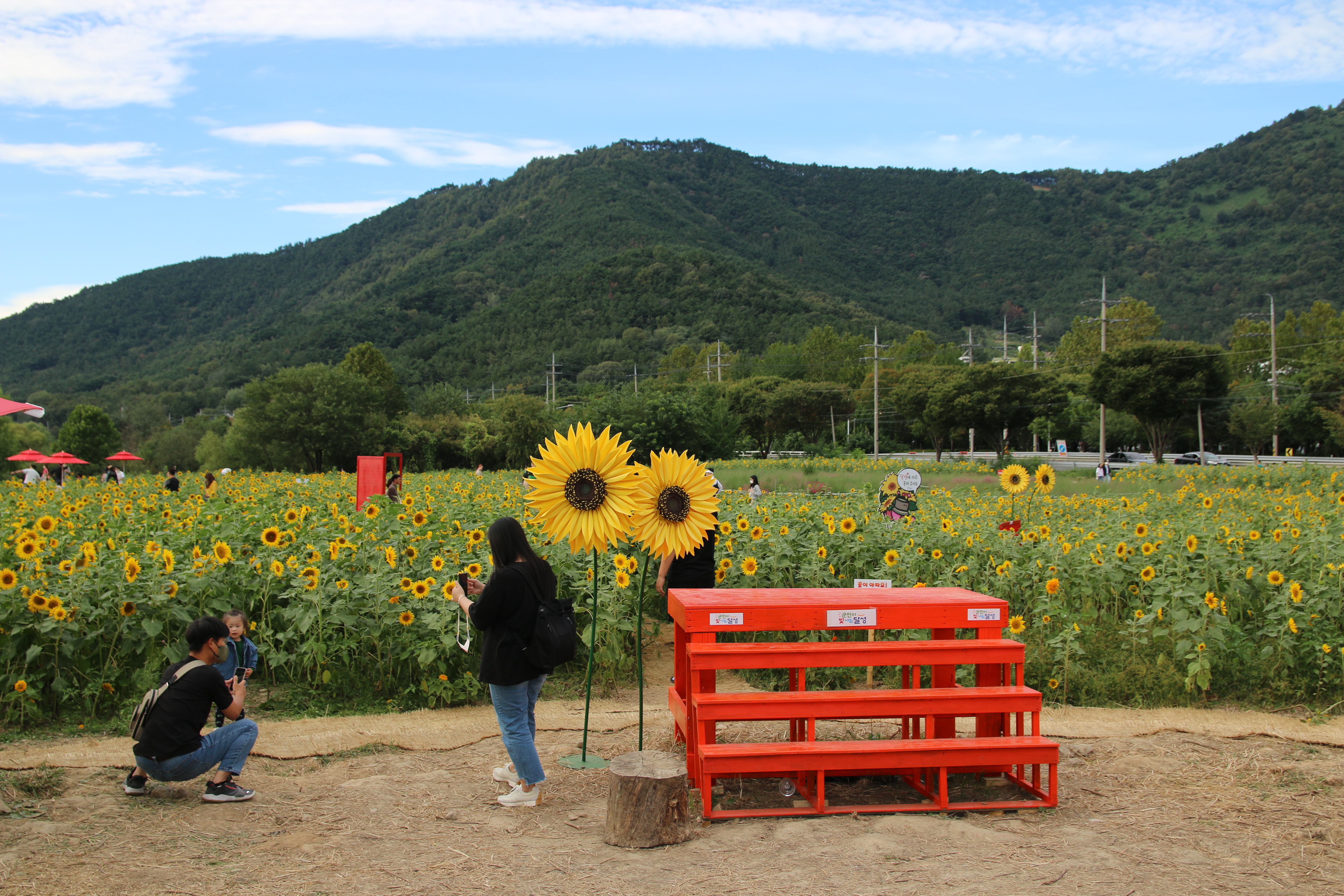 바로 해바라기 가득한 논공꽃단지가 나옵니다.
