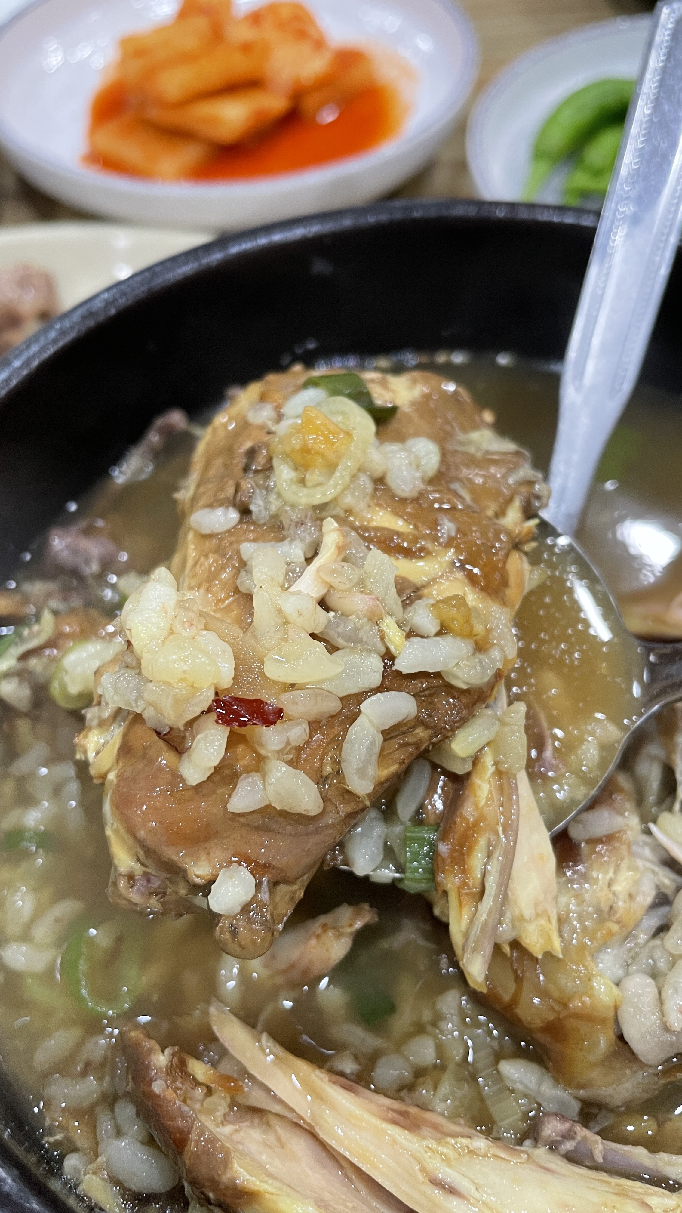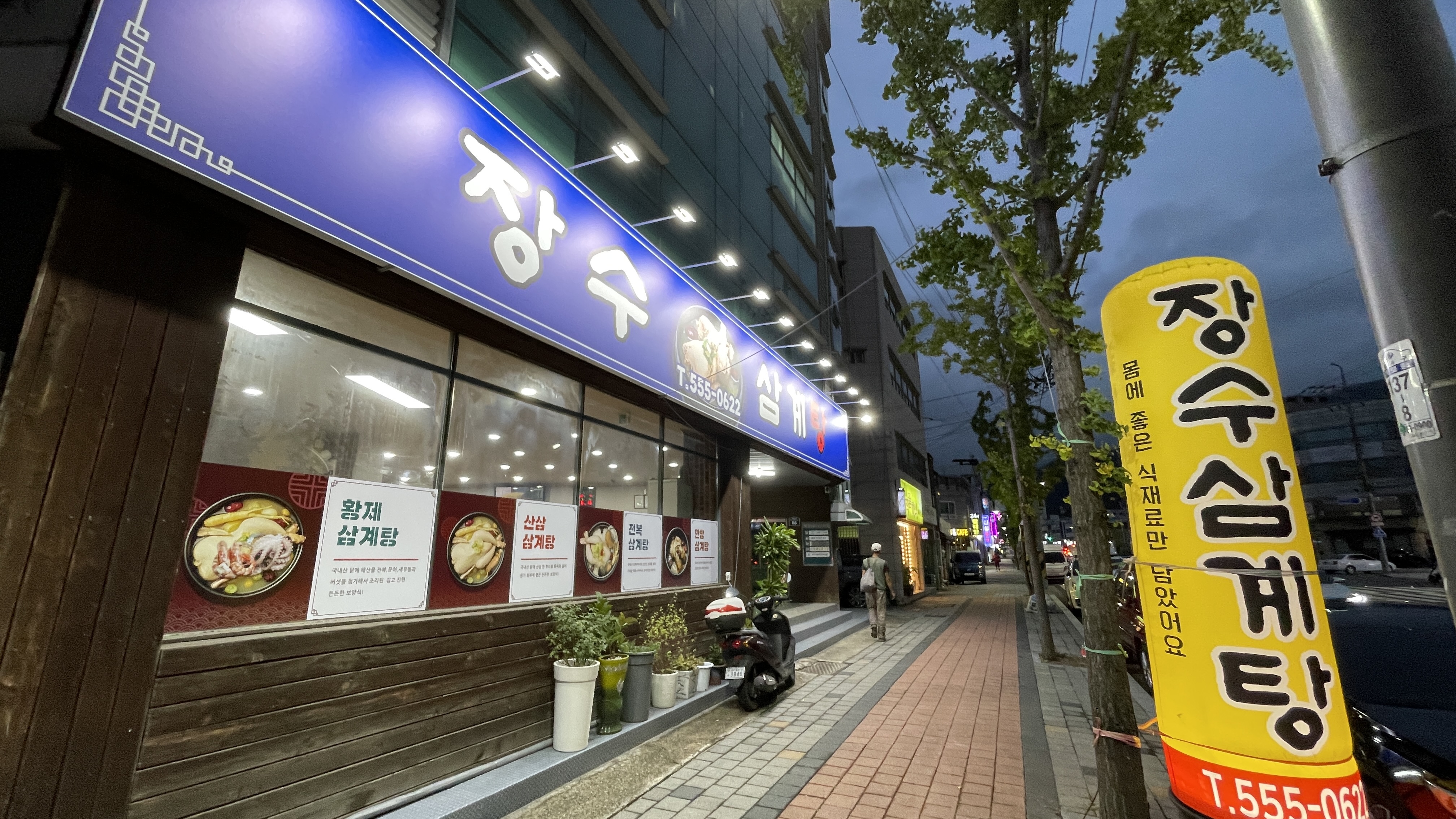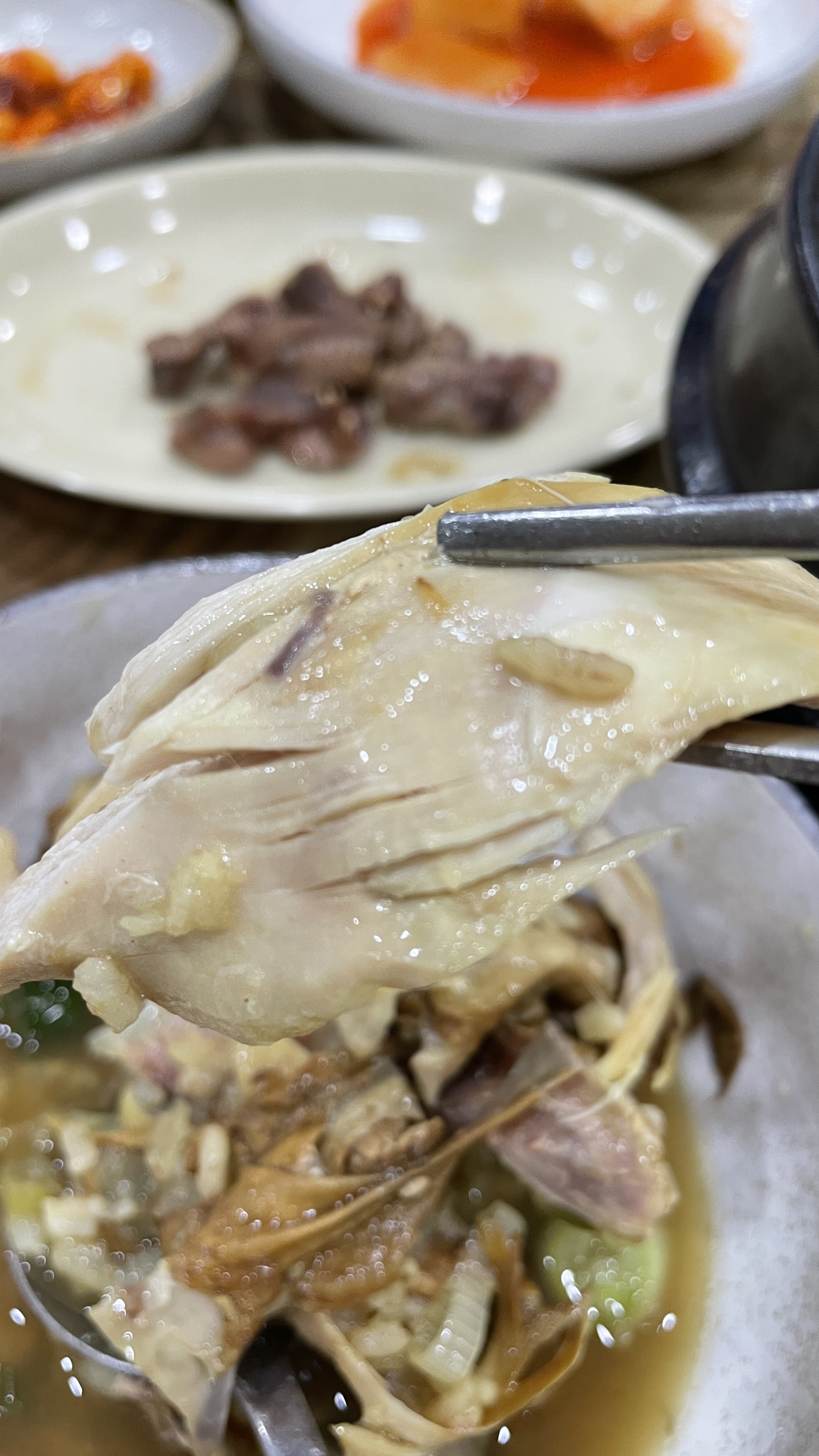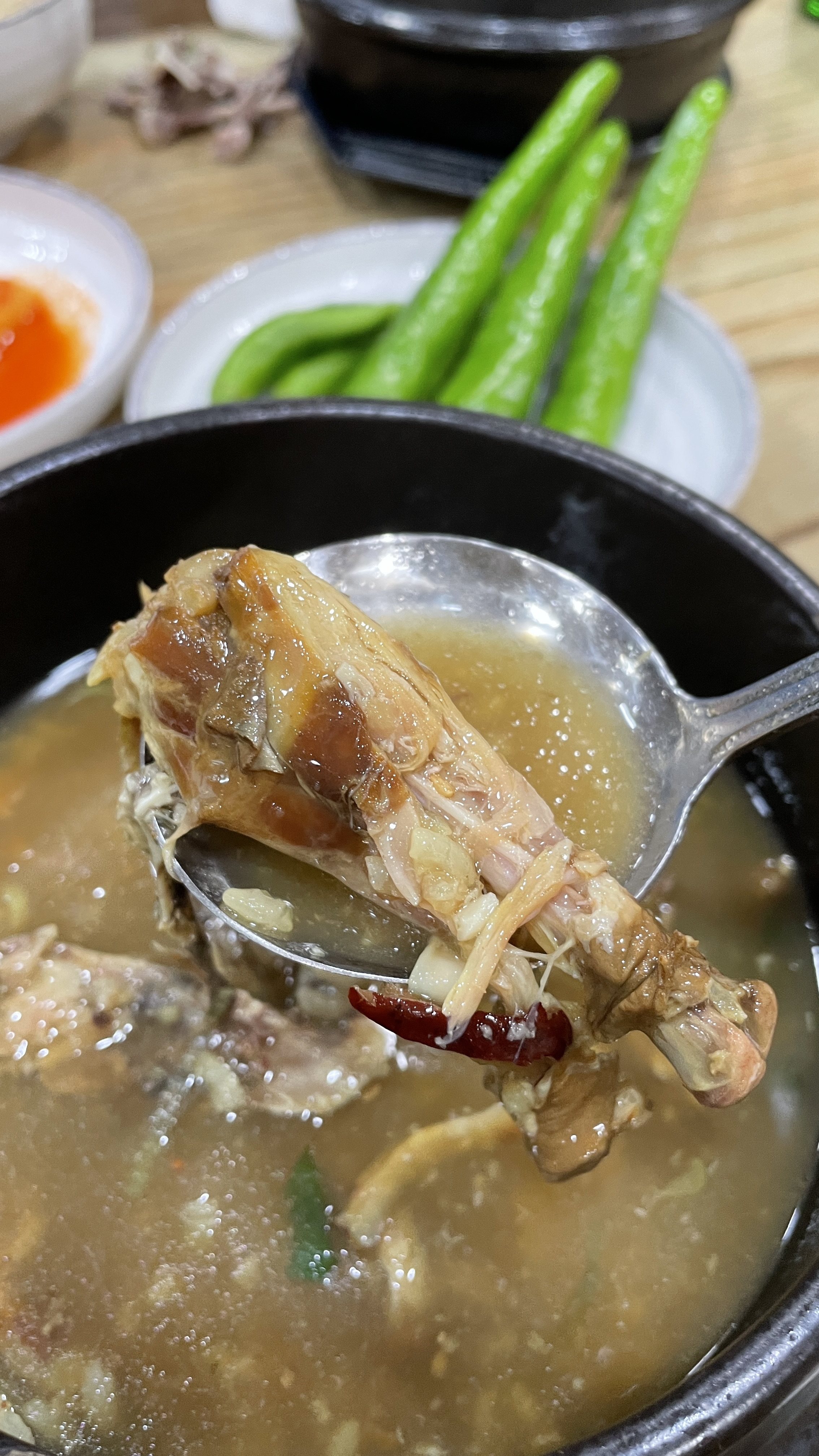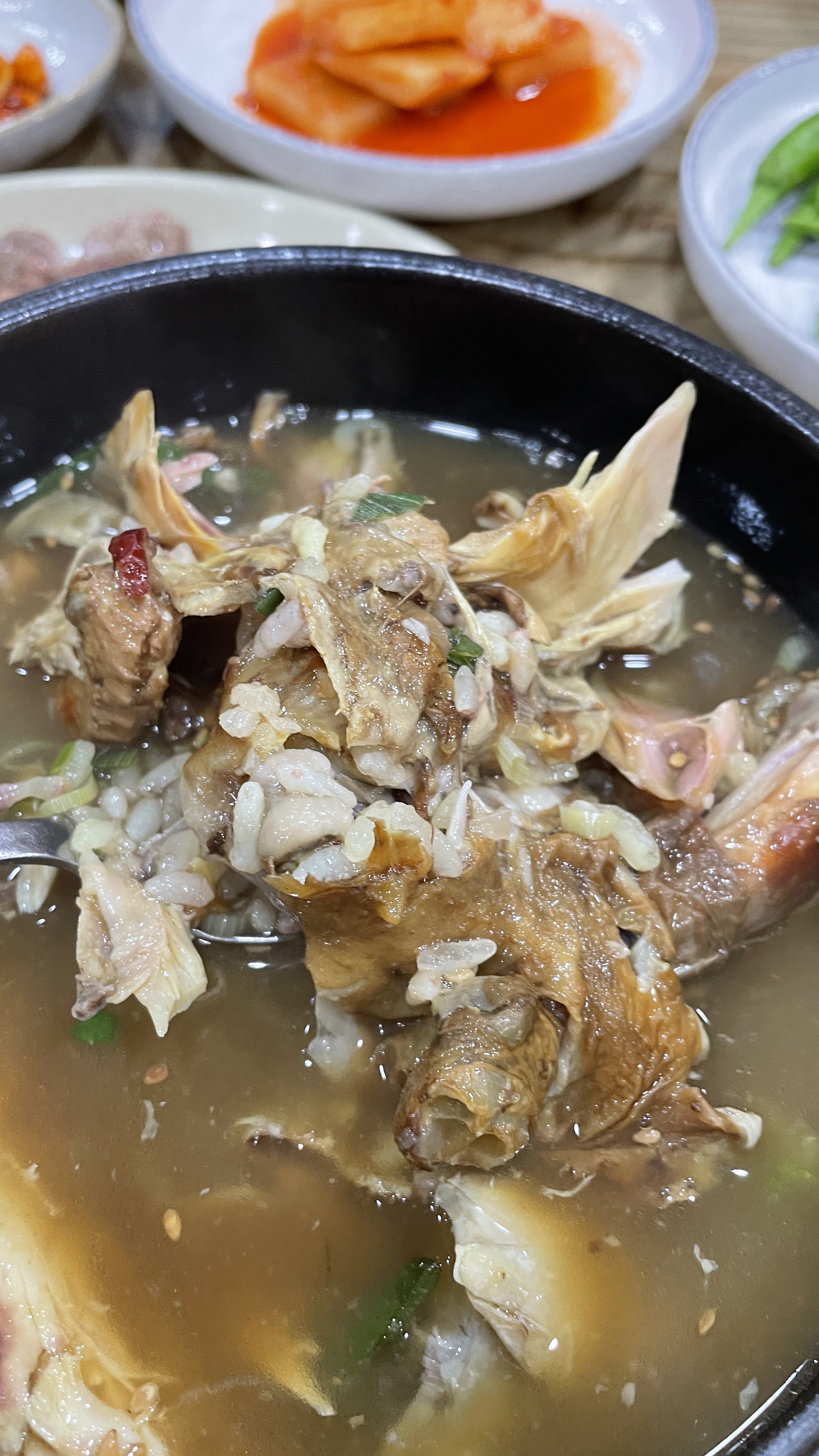 장수삼계탕에서 따뜻한 저녁 식사를 했습니다.