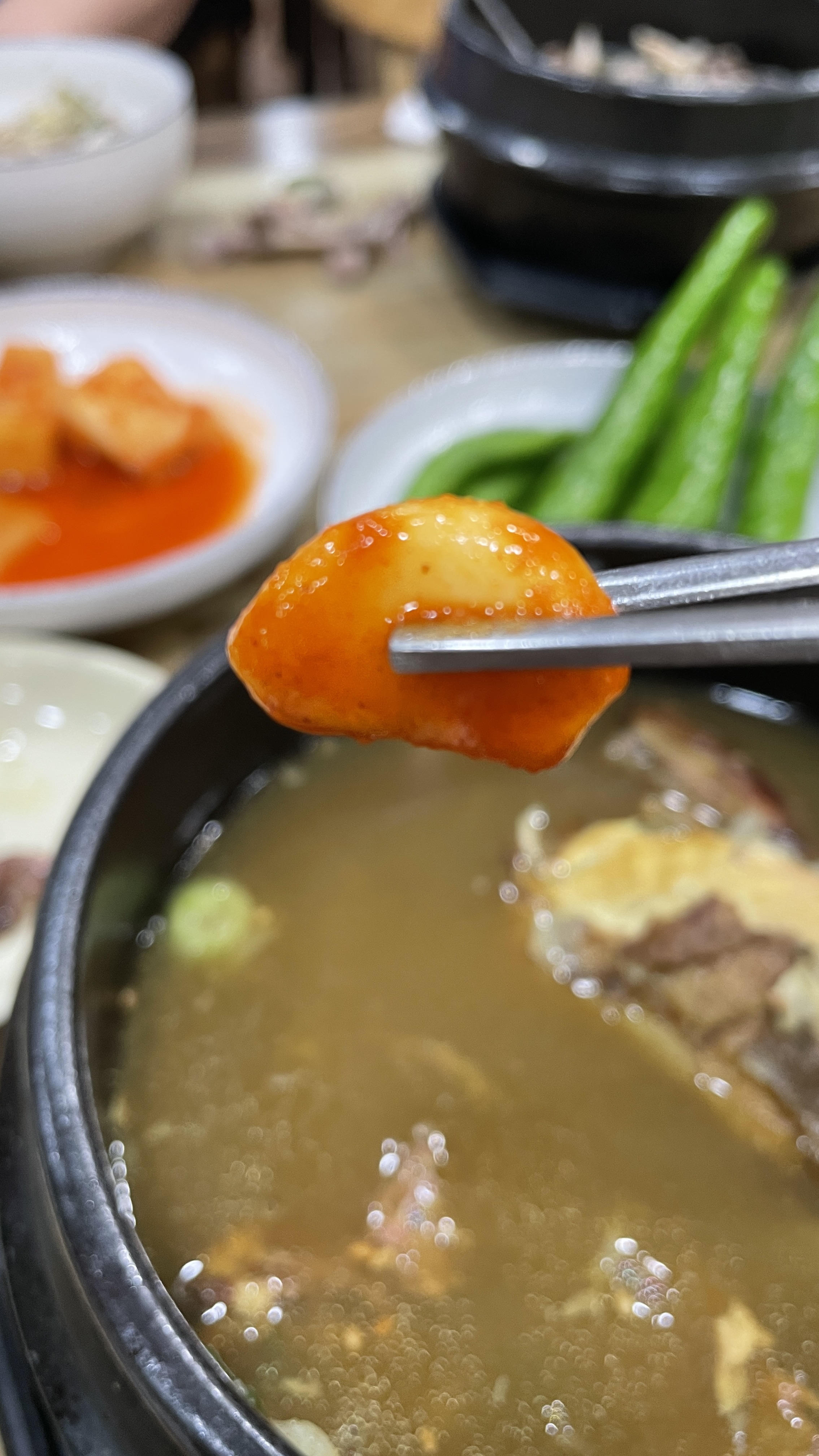 반찬은 깍두기, 마늘쫑, 청양고추/오이고추