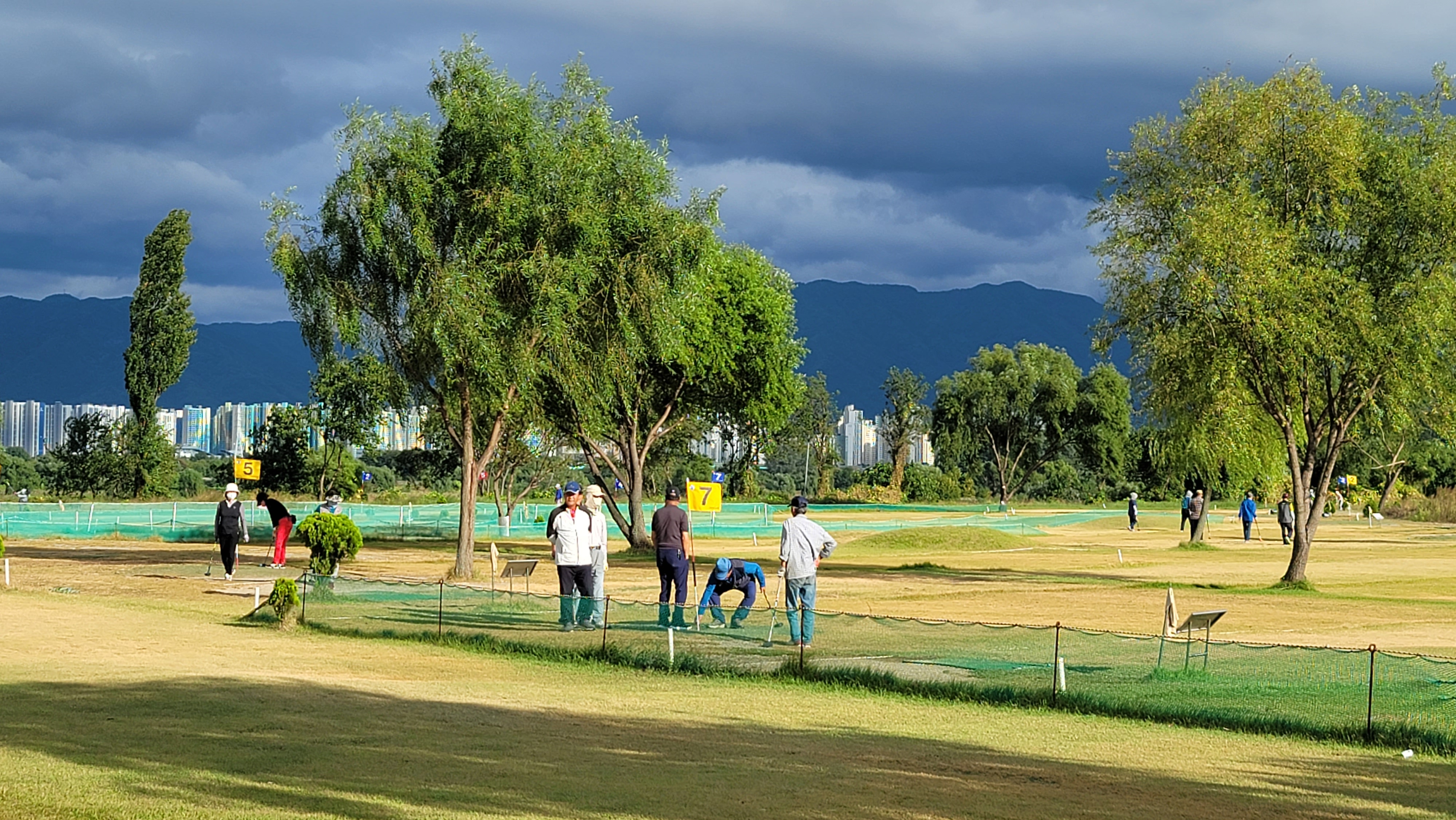 다산파크골프장 잔디는 벌써 가을색을 드러내고 있더군요
