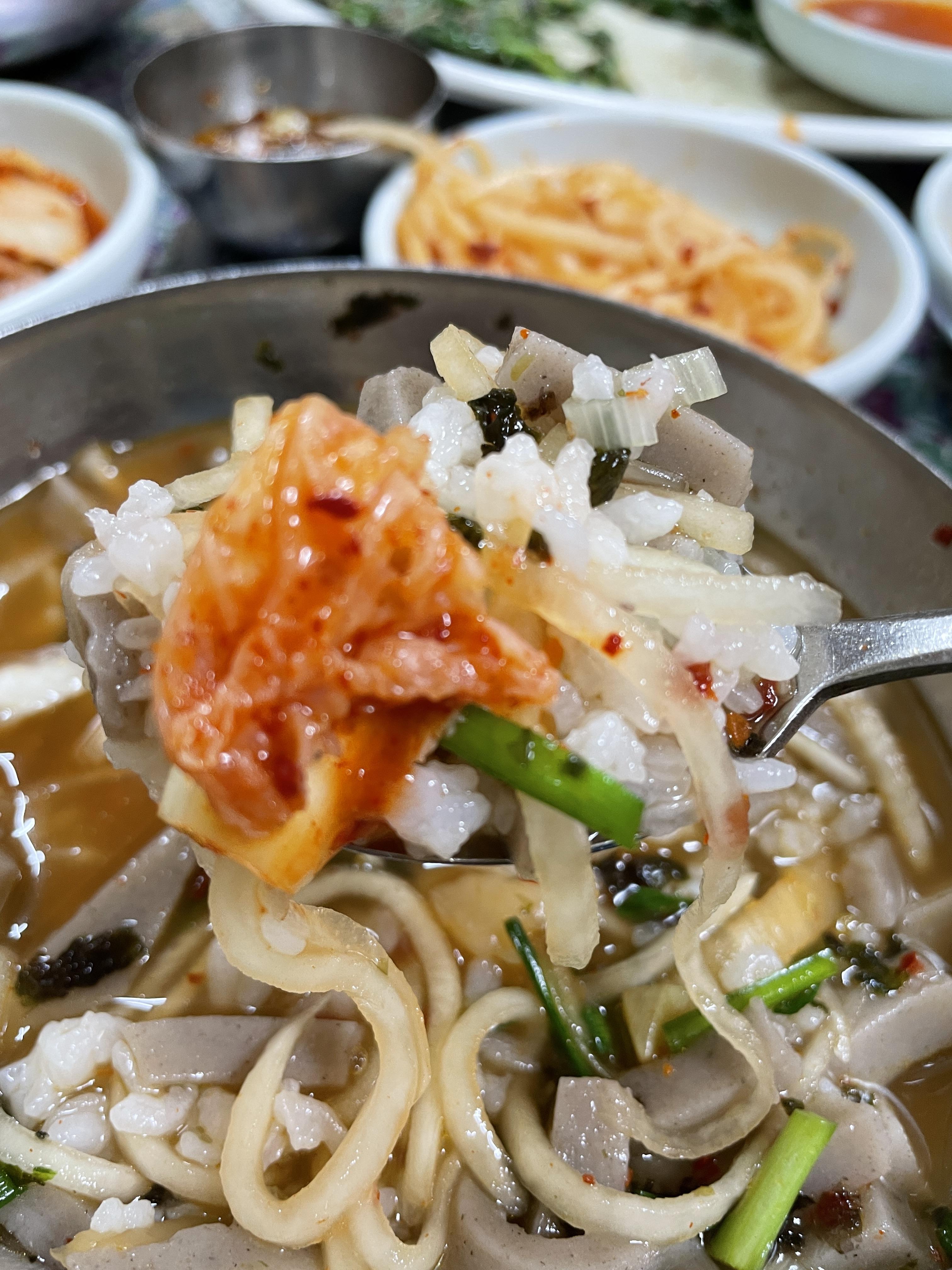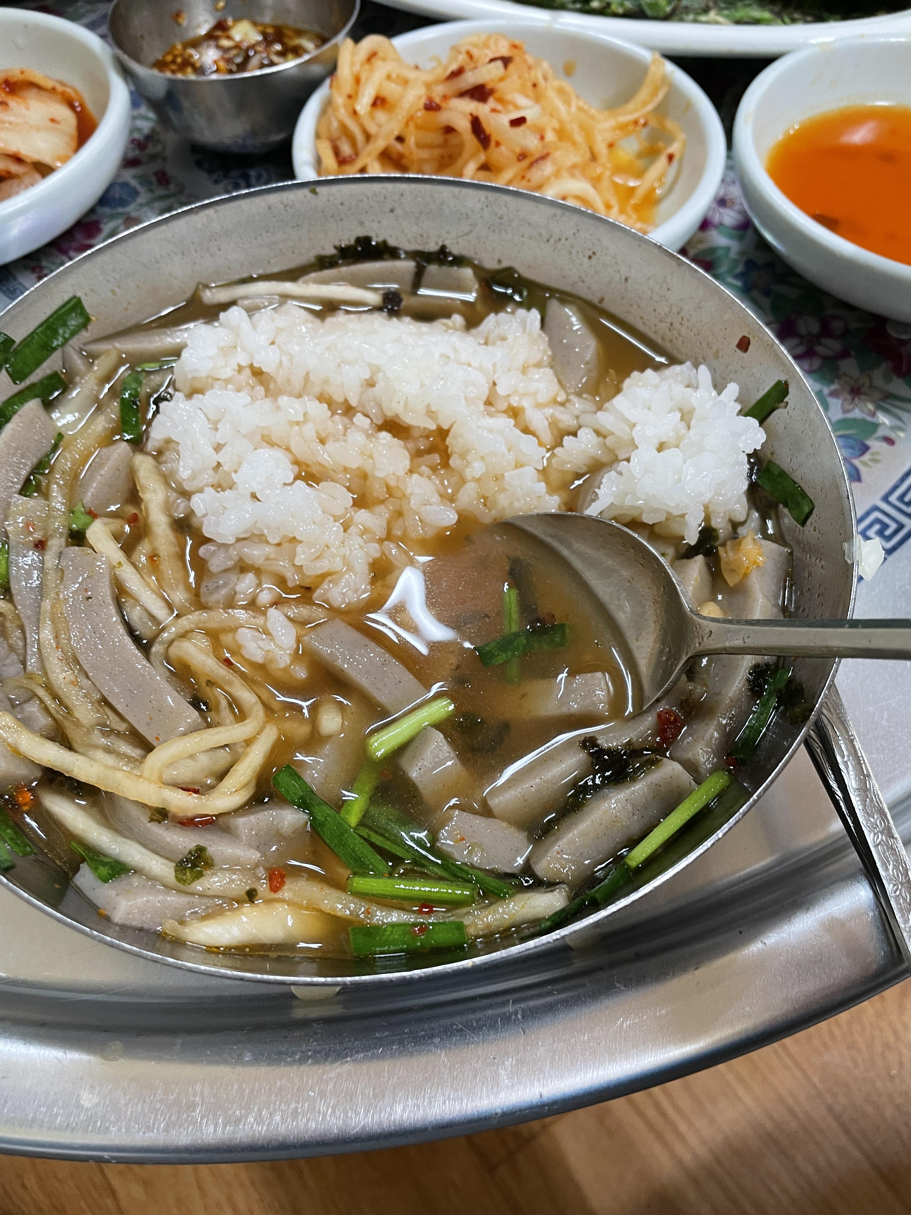어느 정도 먹고 나면 공기밥을 묵에 넣어